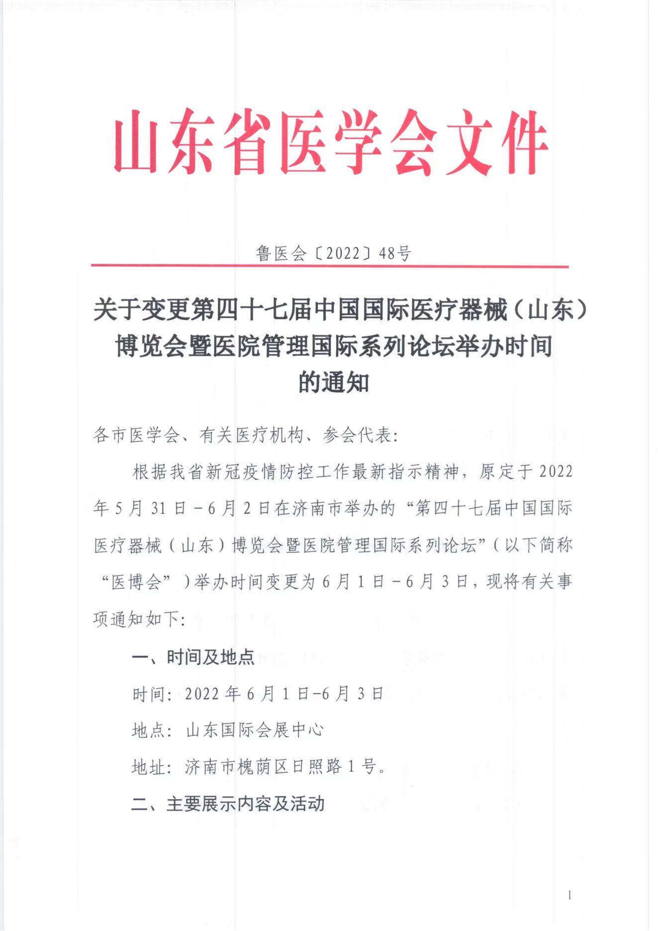 关于变更第四十七届中国国际医疗器械 (山东) 博览会暨医院管理国际系列论坛举办时间的通知