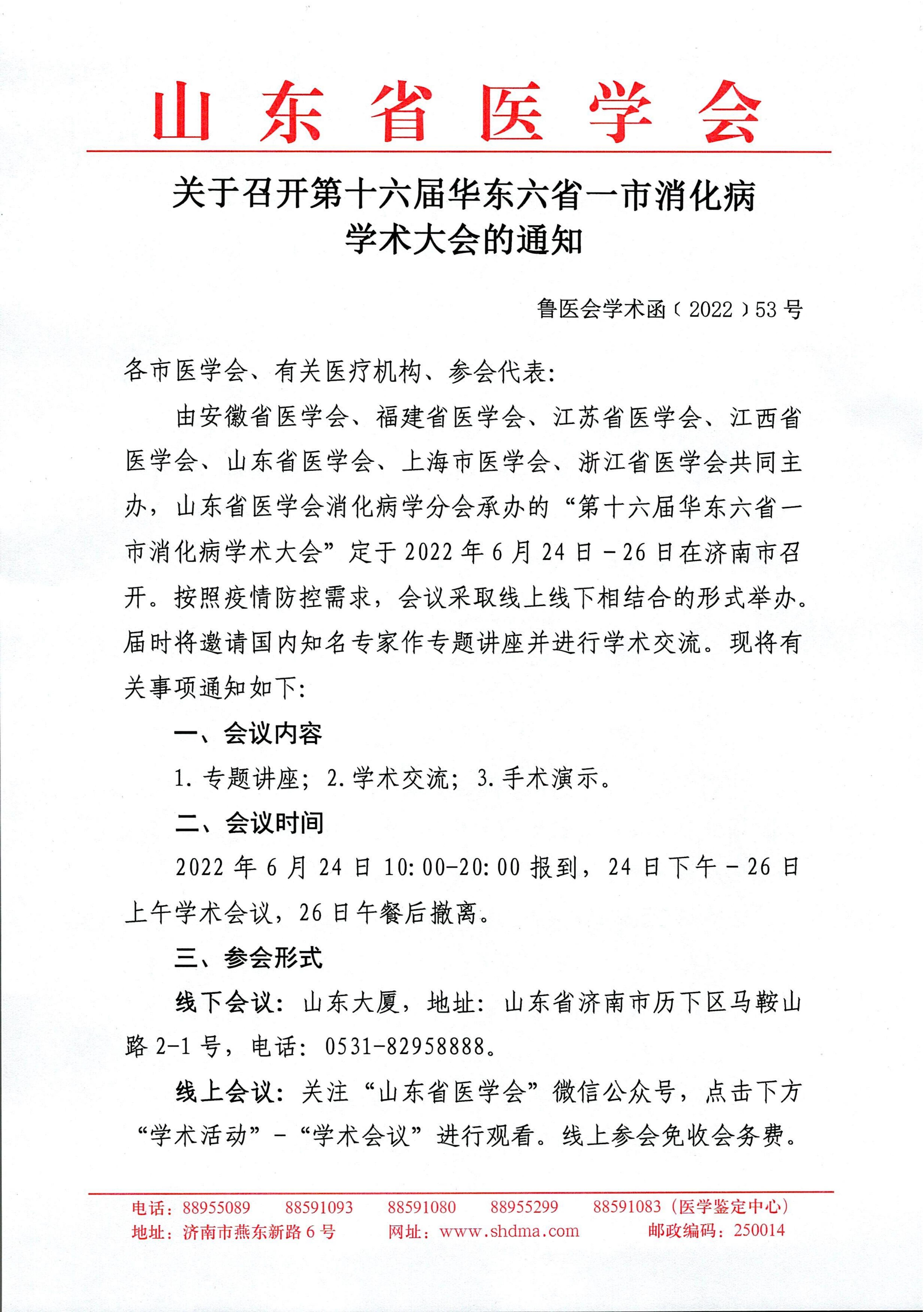 关于召开第十六届华东六省一市消化病学术大会的通知