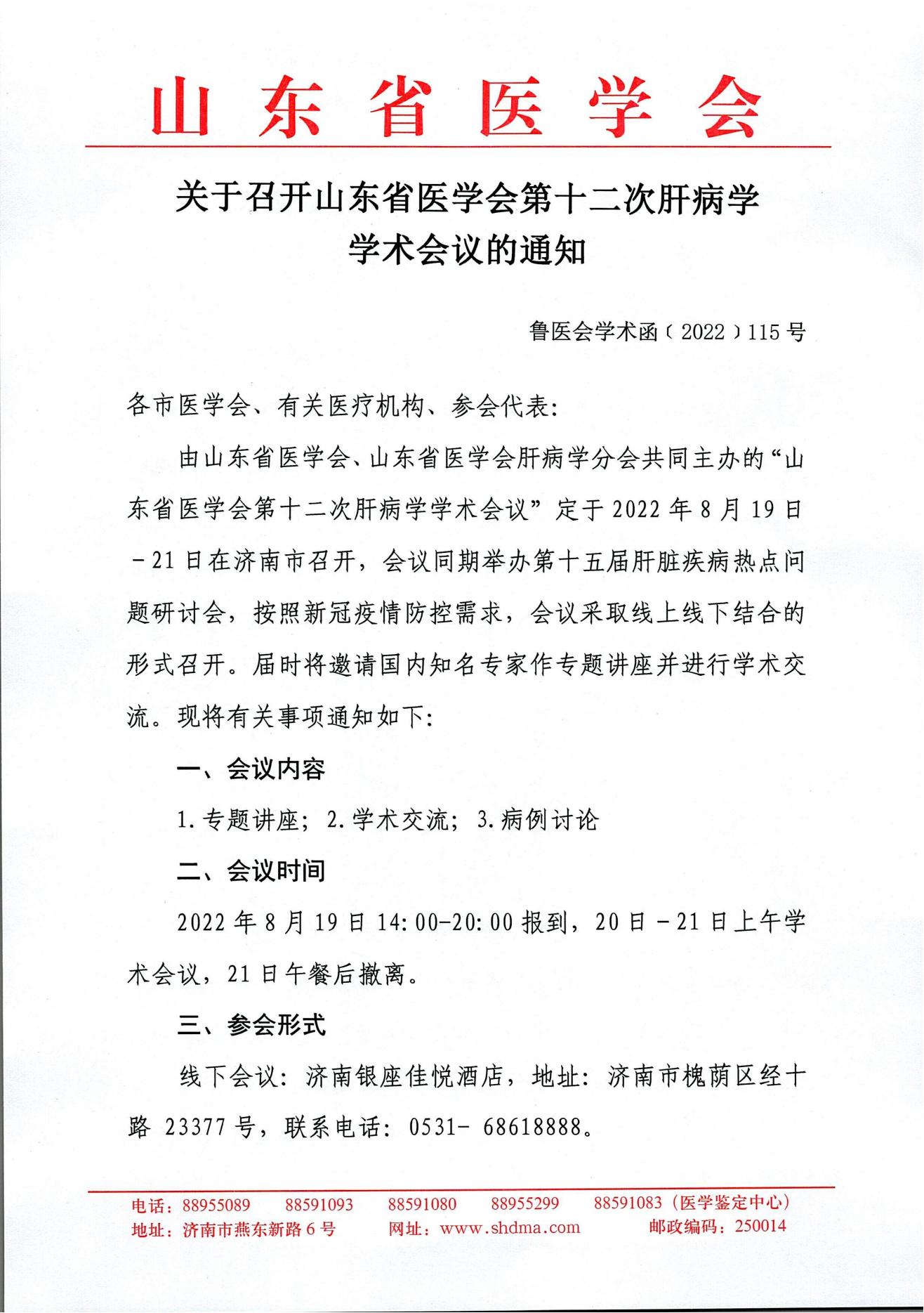关于召开山东省医学会第十二次肝病学学术会议的通知
