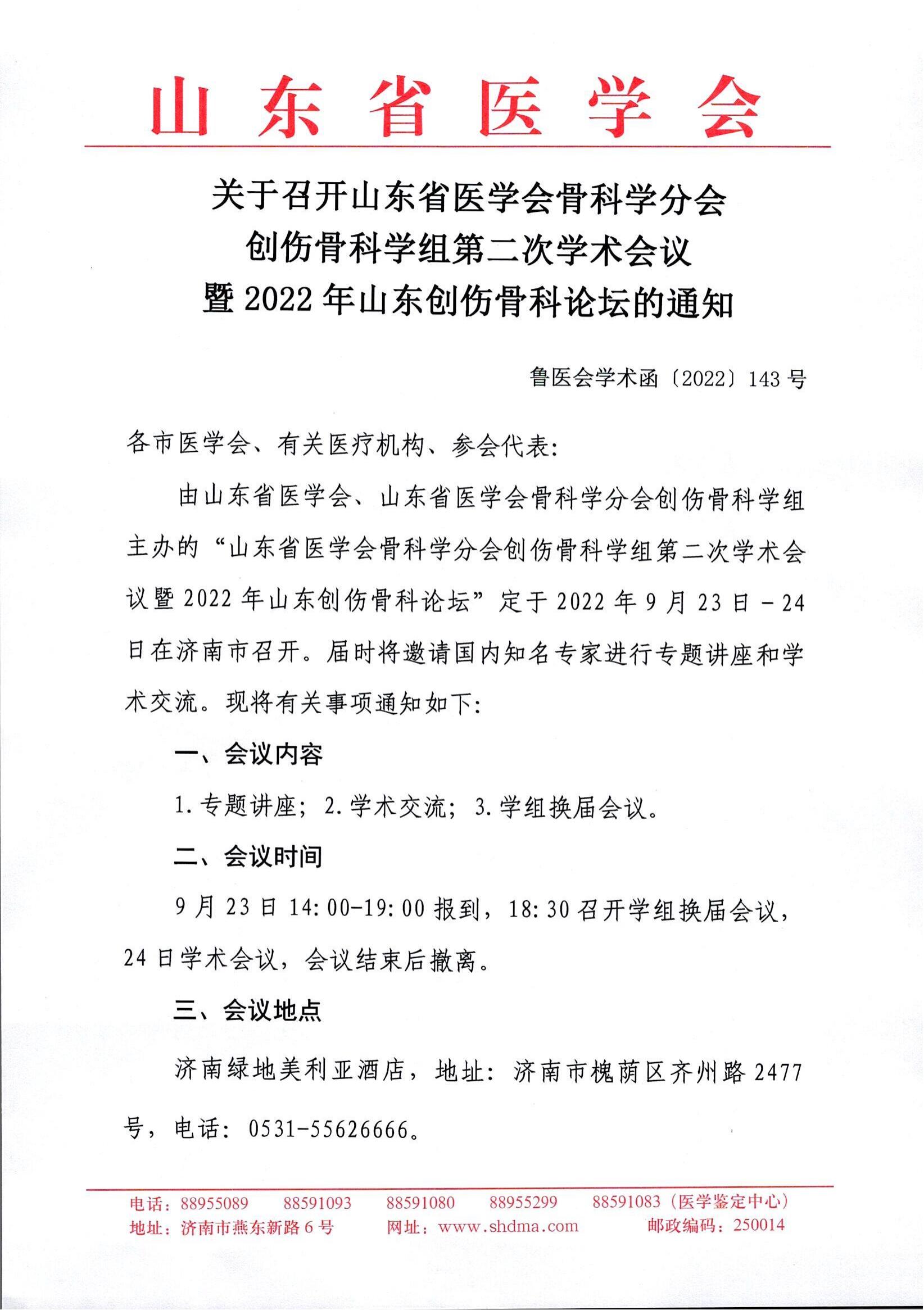 关于召开山东省医学会骨科学分会创伤骨科学组第二次学术会议暨2022年山东创伤骨科论坛的通知