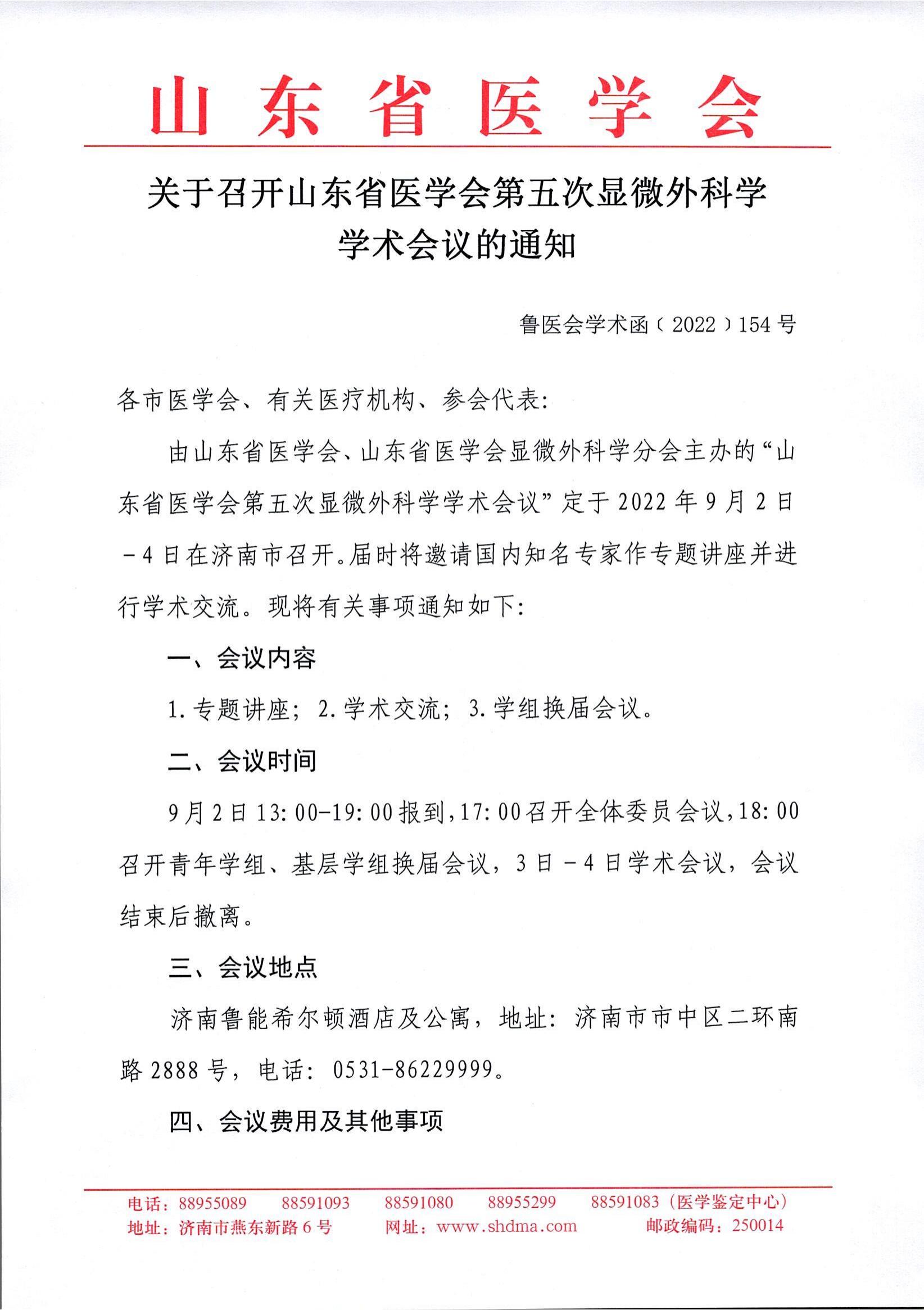 关于召开山东省医学会第五次显微外科学学术会议的通知