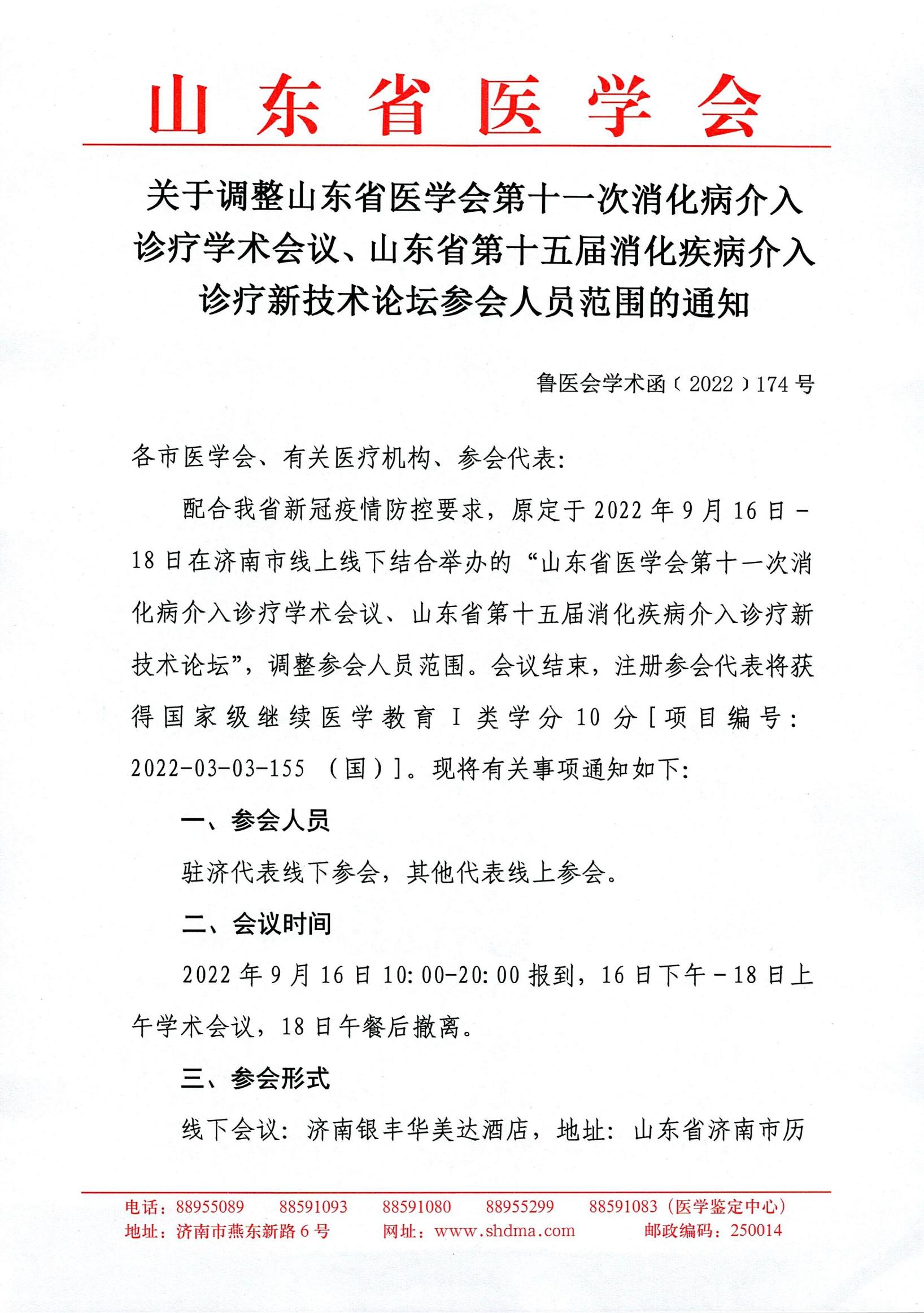 关于调整山东省医学会第十一次消化病介入诊疗学术会议、山东省第十五届消化疾病介入诊疗新技术论坛参会人员范围的通知