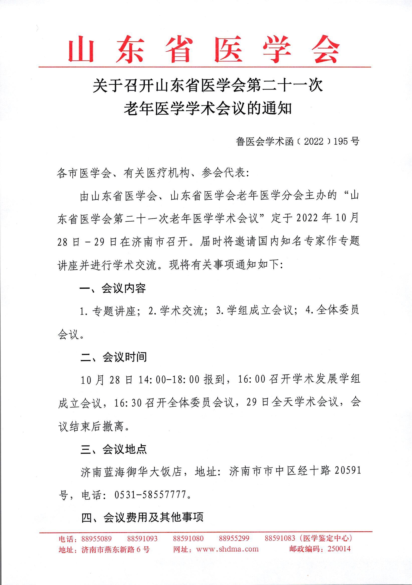 关于召开山东省医学会第二十一次老年医学学术会议的通知