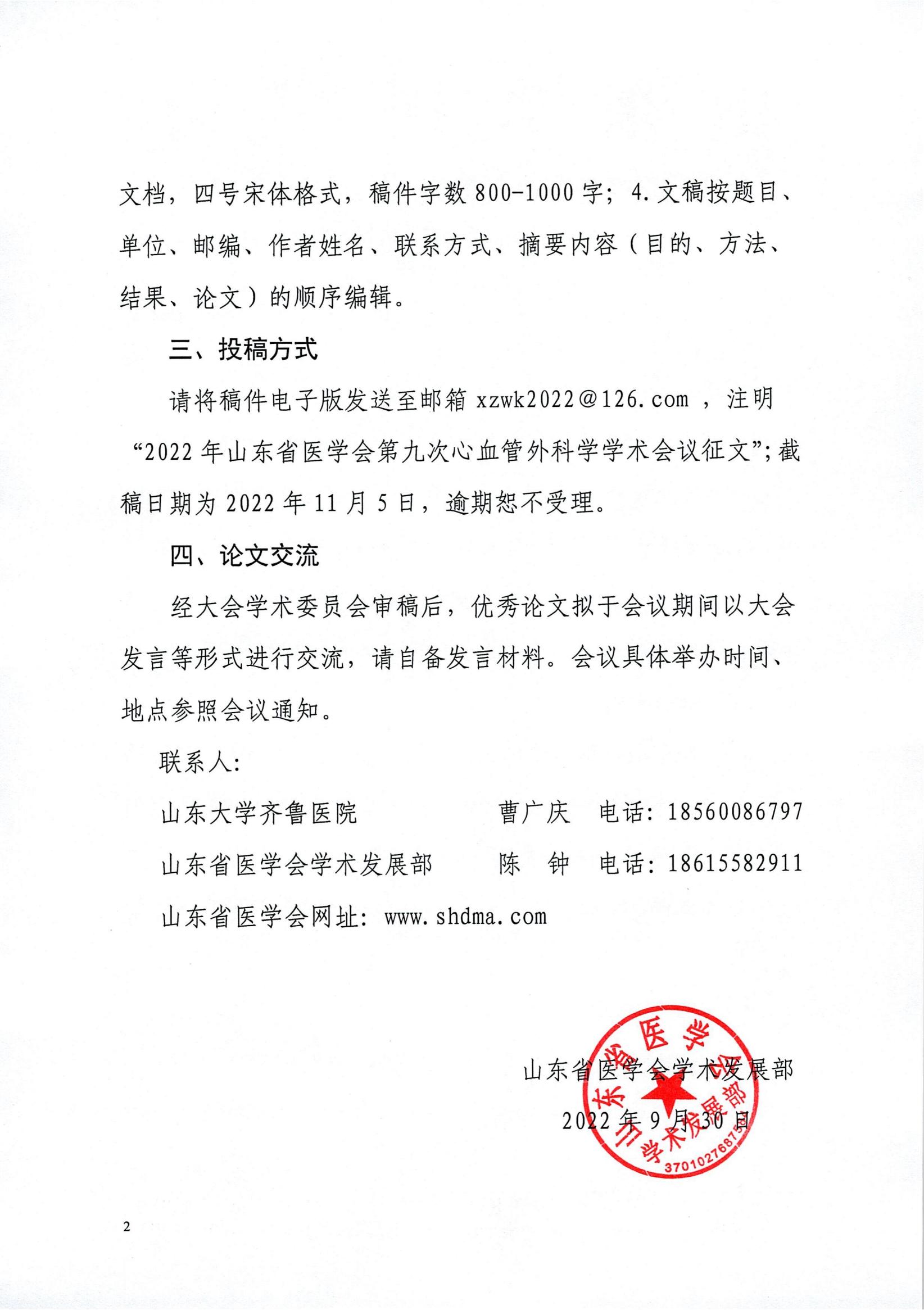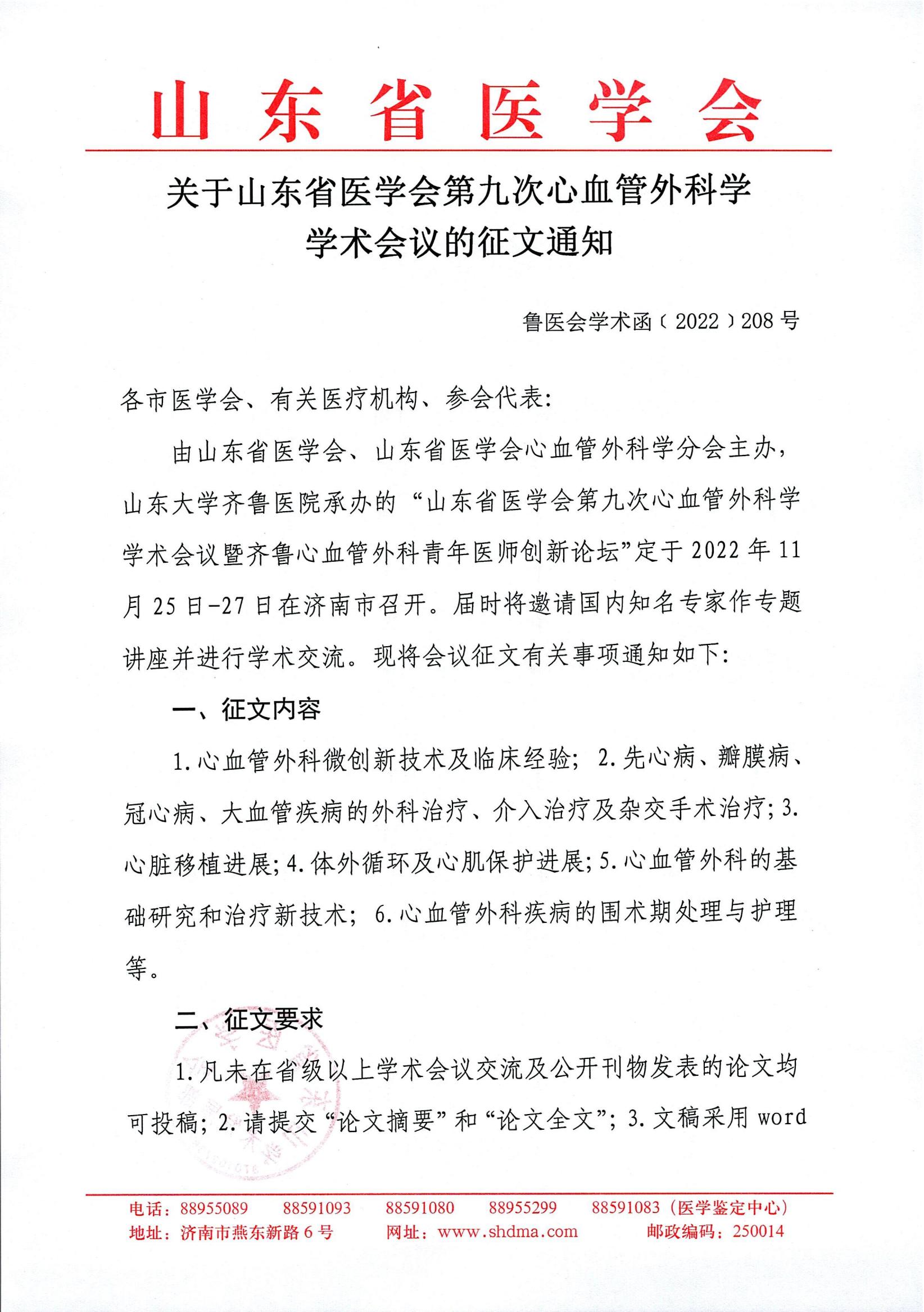 关于山东省医学会第九次心血管外科学学术会议的征文通知