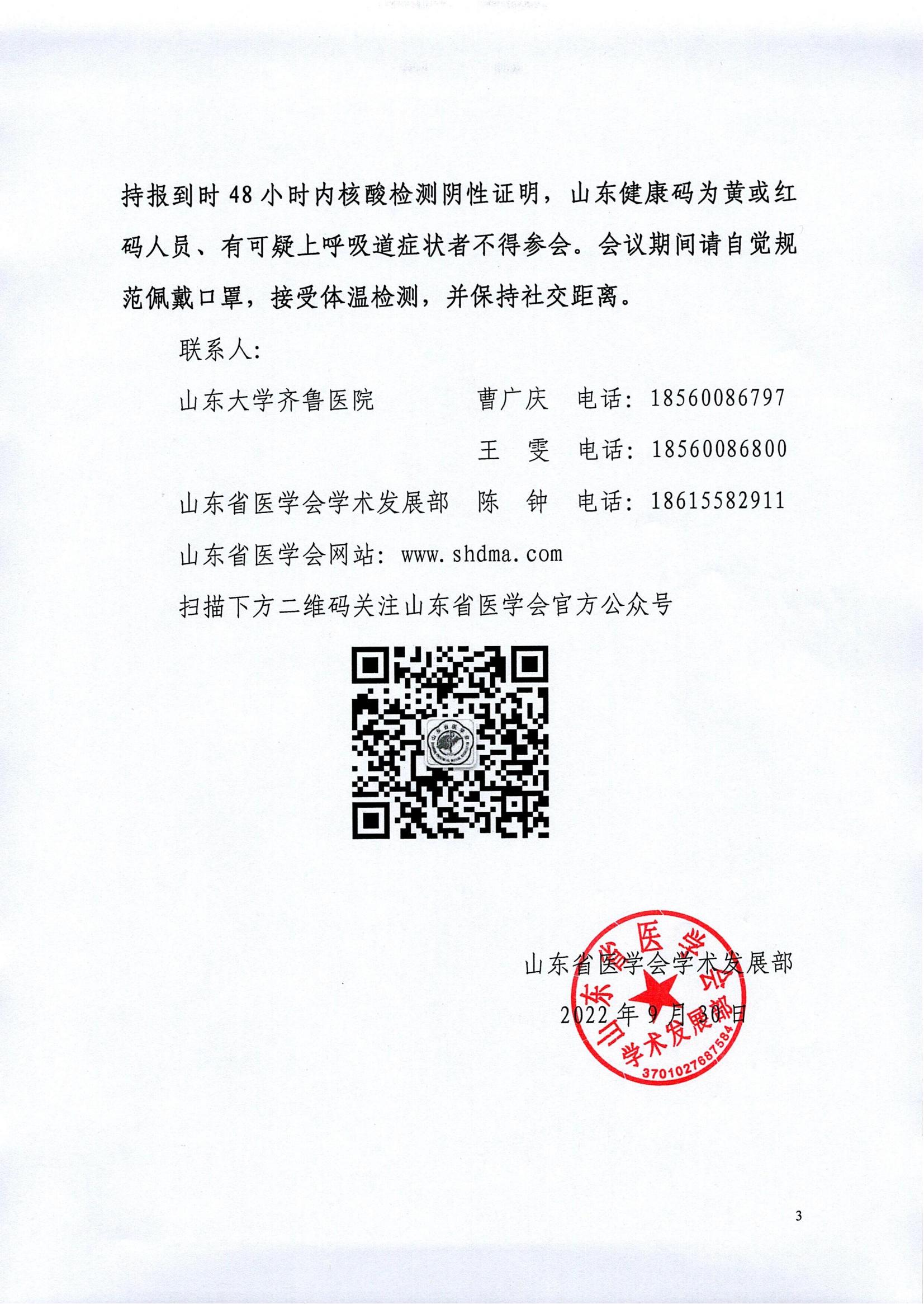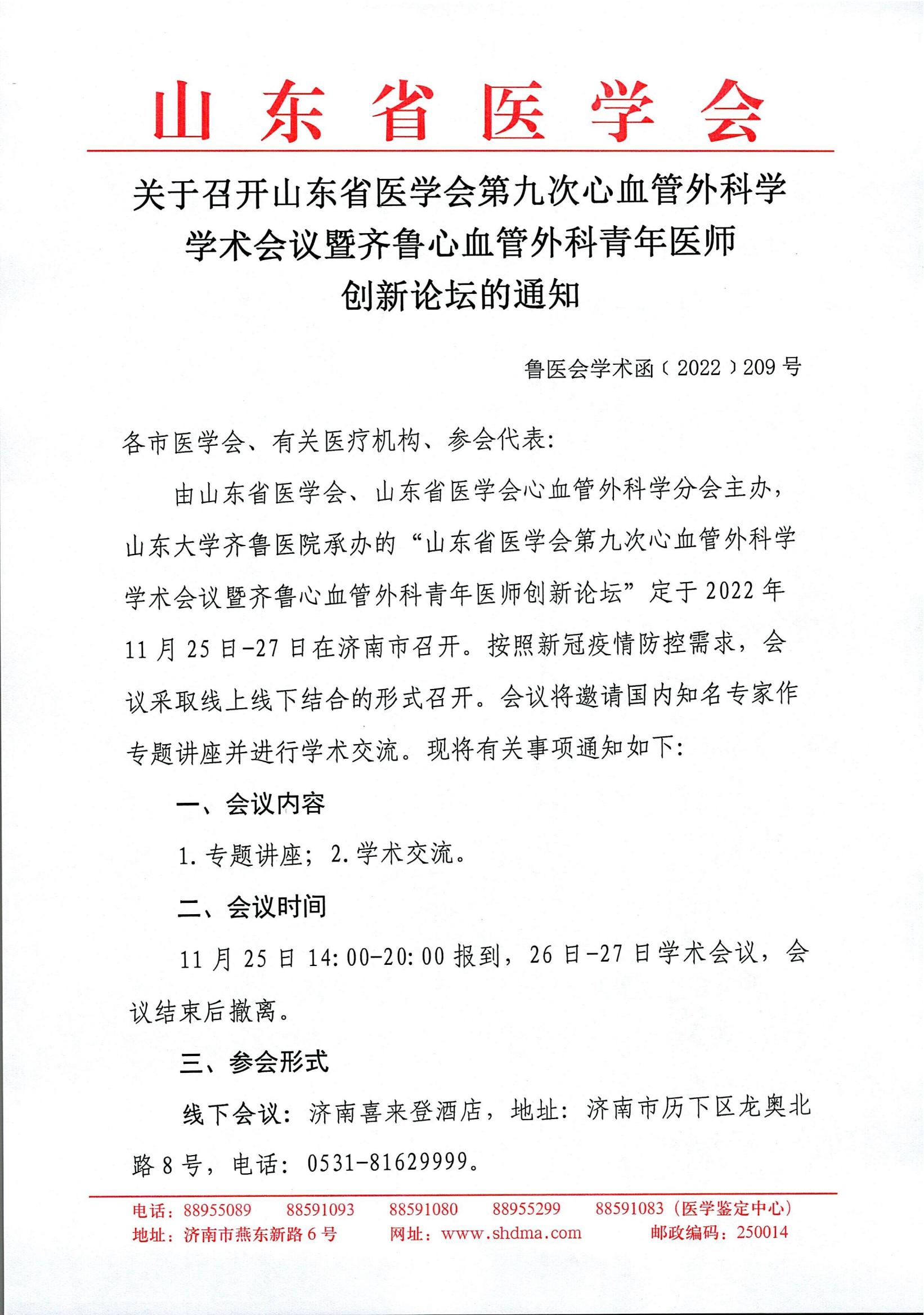 关于召开山东省医学会第九次心血管外科学学术会议暨齐鲁心血管外科青年医师创新论坛的通知