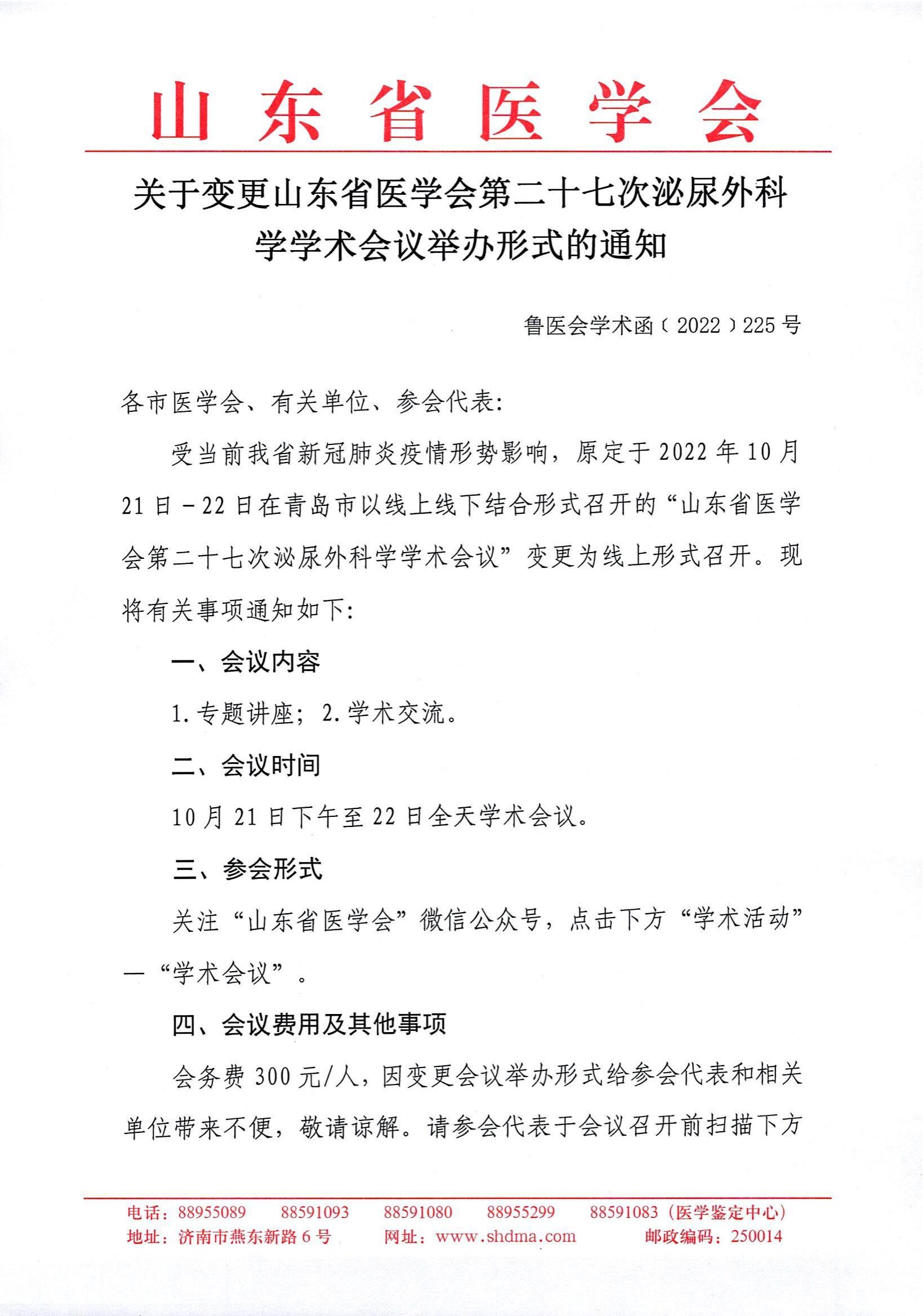 关于变更山东省医学会第二十七次泌尿外科学学术会议举办形式的通知