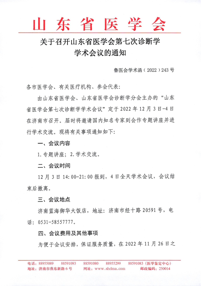 关于召开山东省医学会第七次诊断学学术会议的通知