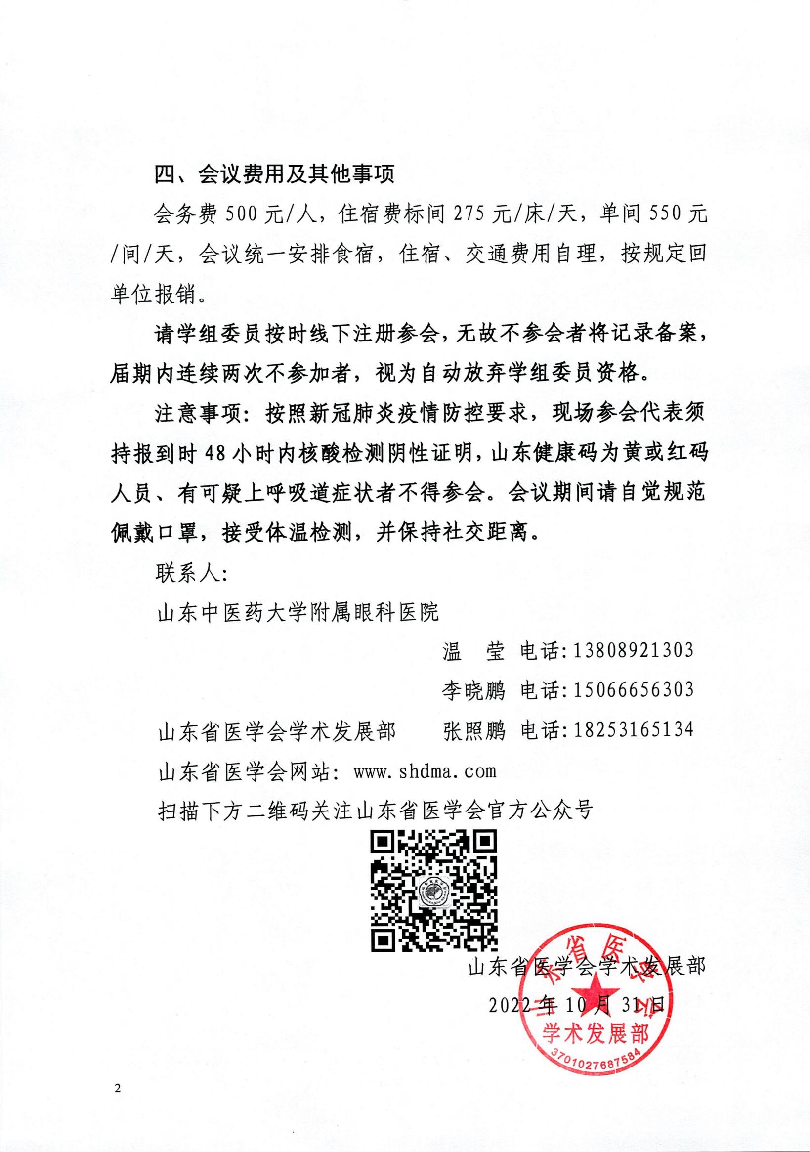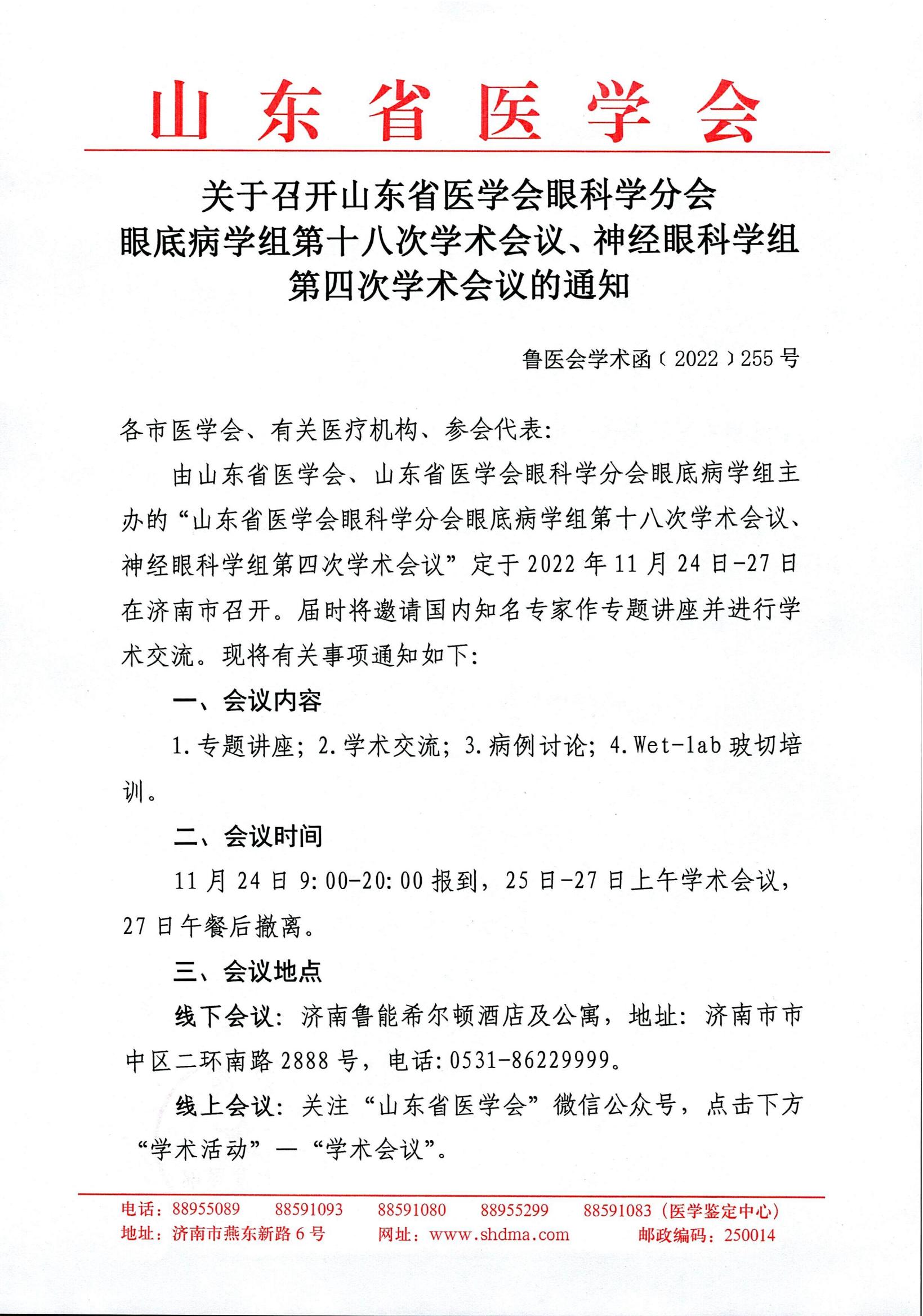 关于召开山东省医学会眼科学分会眼底病学组第十八次学术会议、神经眼科学组第四次学术会议的通知