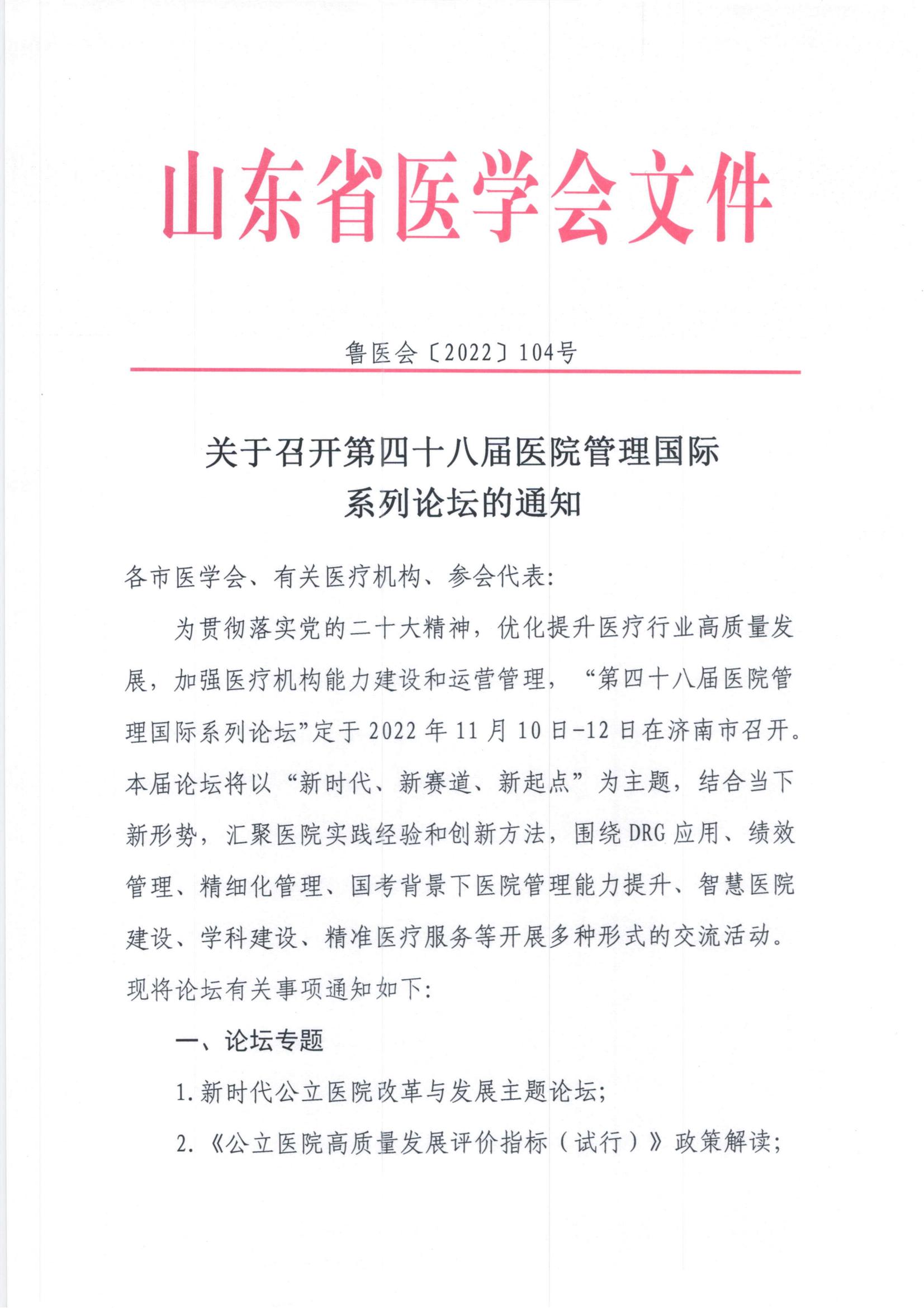 关于召开第四十八届医院管理国际系列论坛的通知