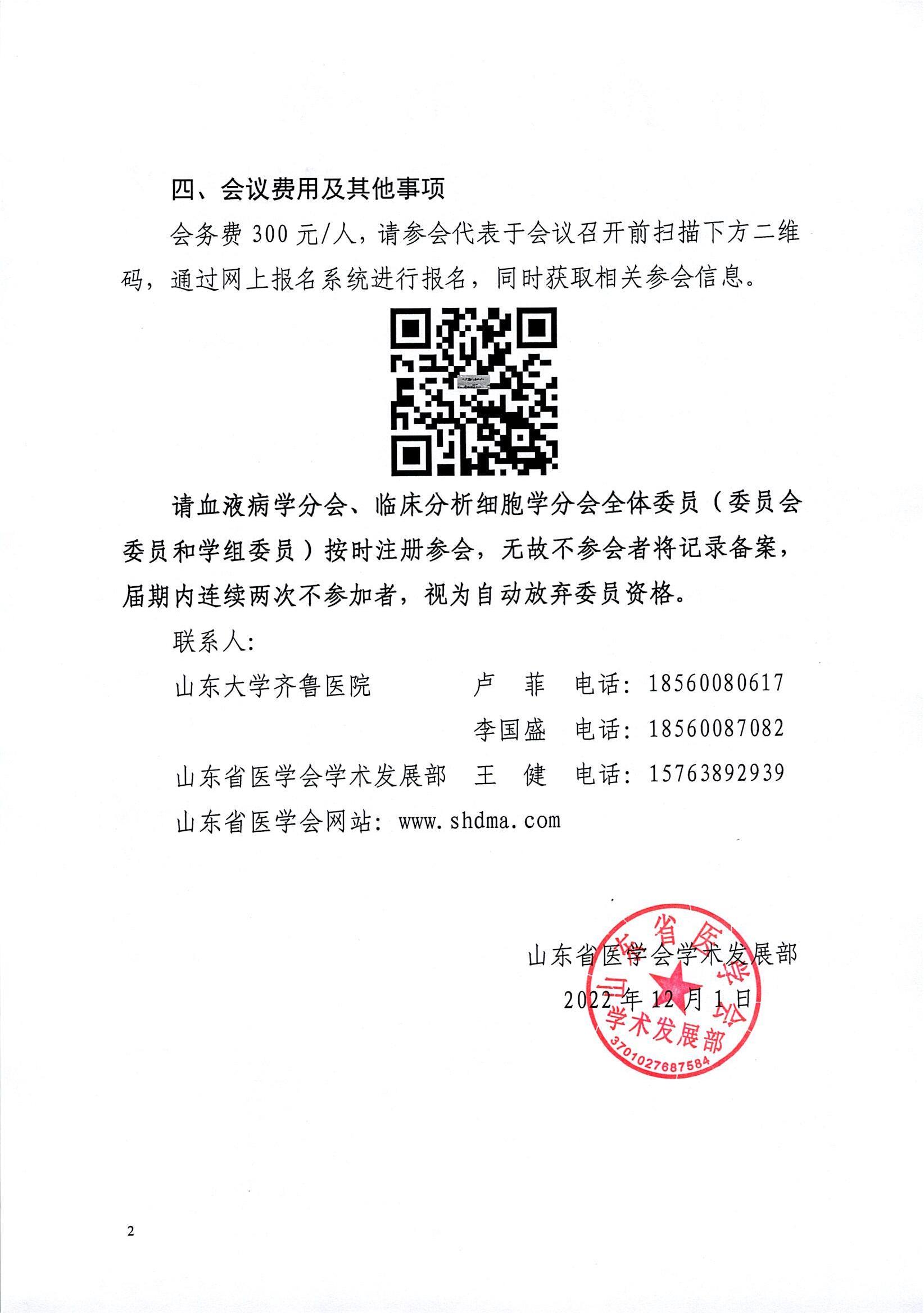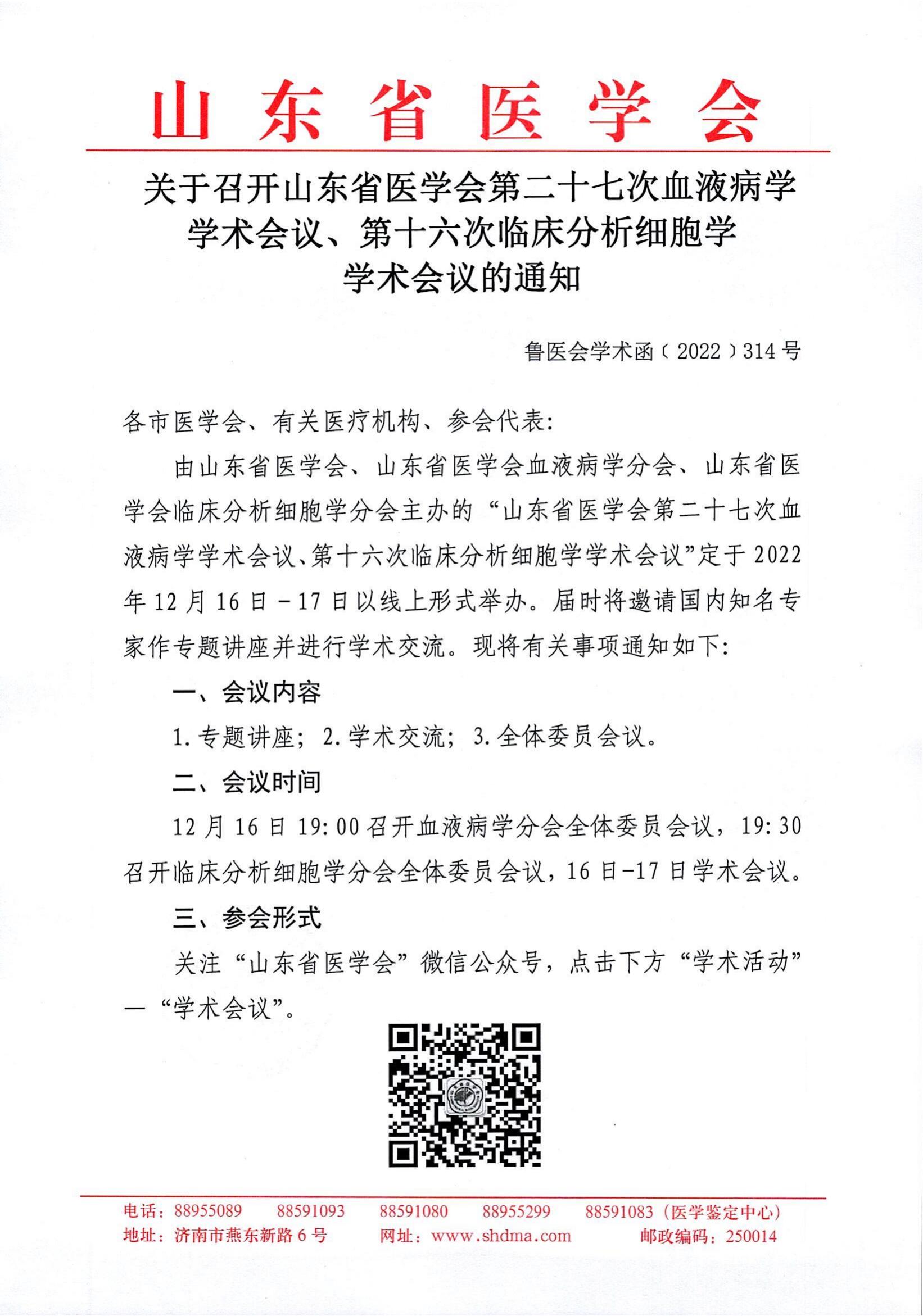 山东省医学会第二十七次血液病学学术会议、第十六次临床分析细胞学学术会议