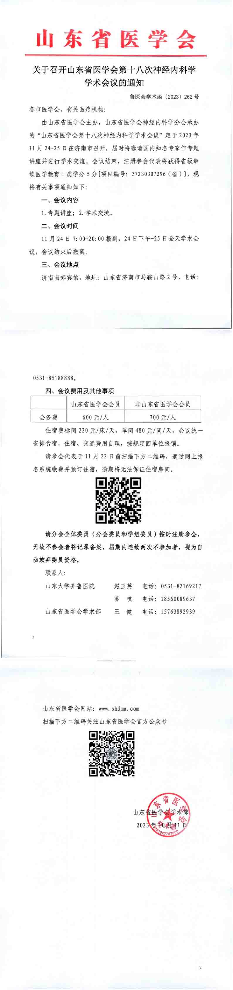 关于召开山东省医学会第十八次神经内科学学术会议的通知