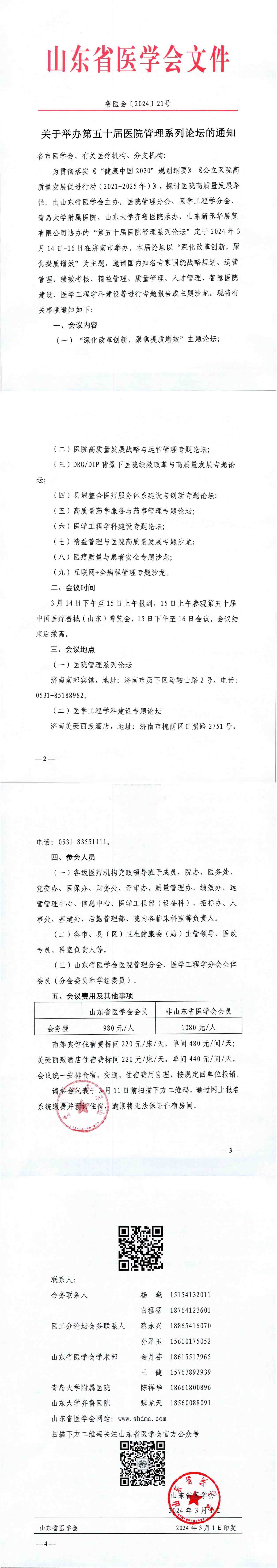 关于举办第五十届医院管理系列论坛的通知