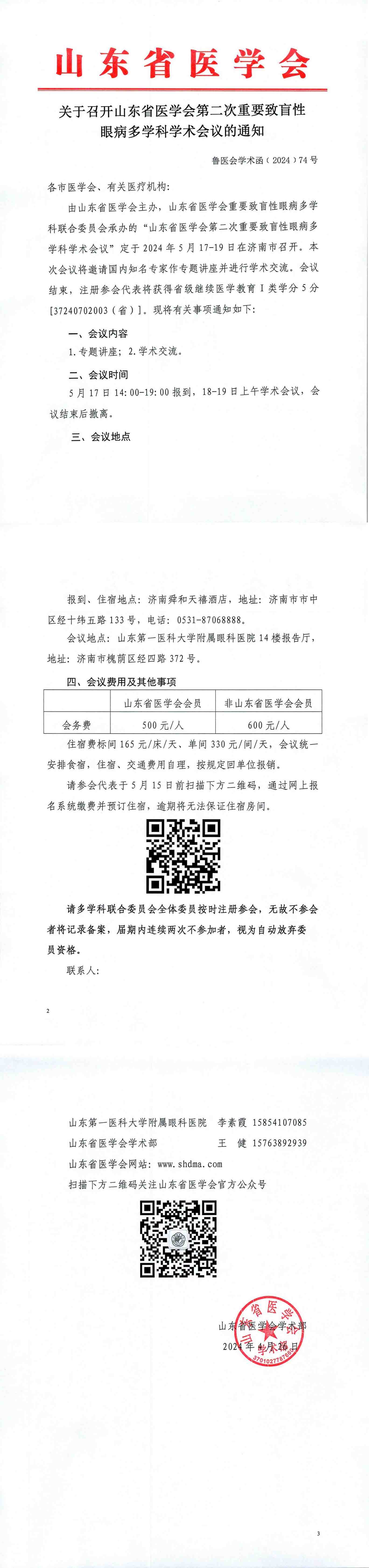 关于召开山东省医学会第二次重要致盲性眼病多学科学术会议的通知