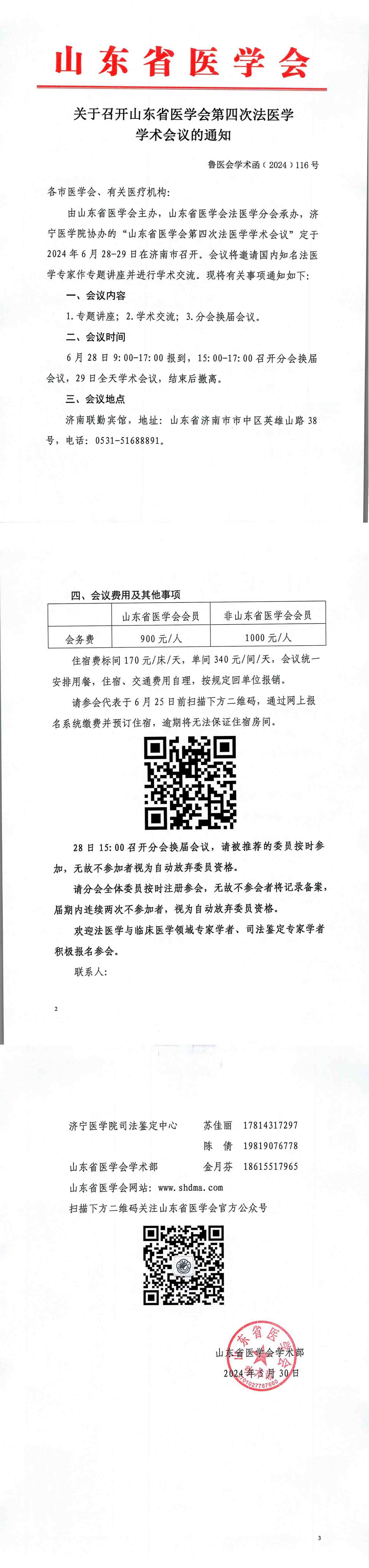 关于召开山东省医学会第四次法医学学术会议的通知