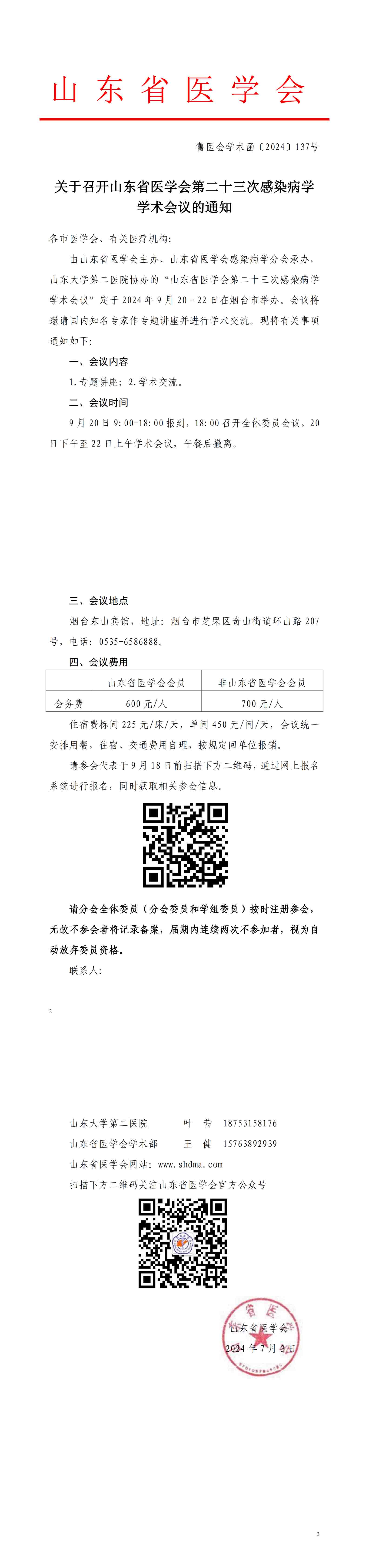 关于召开山东省医学会第二十三次感染病学学术会议的通知