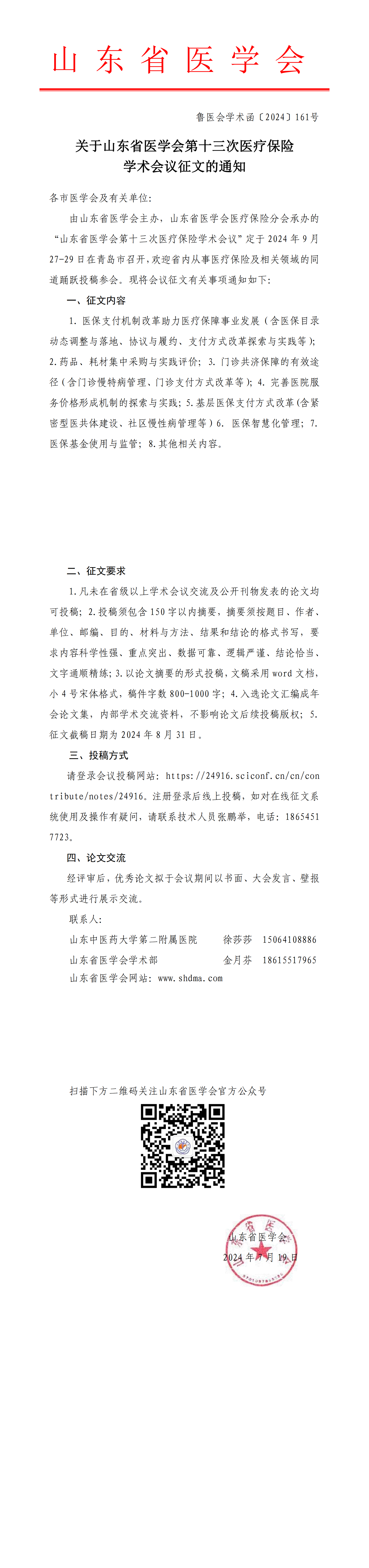 关于山东省医学会第十三次医疗保险学术会议征文的通知
