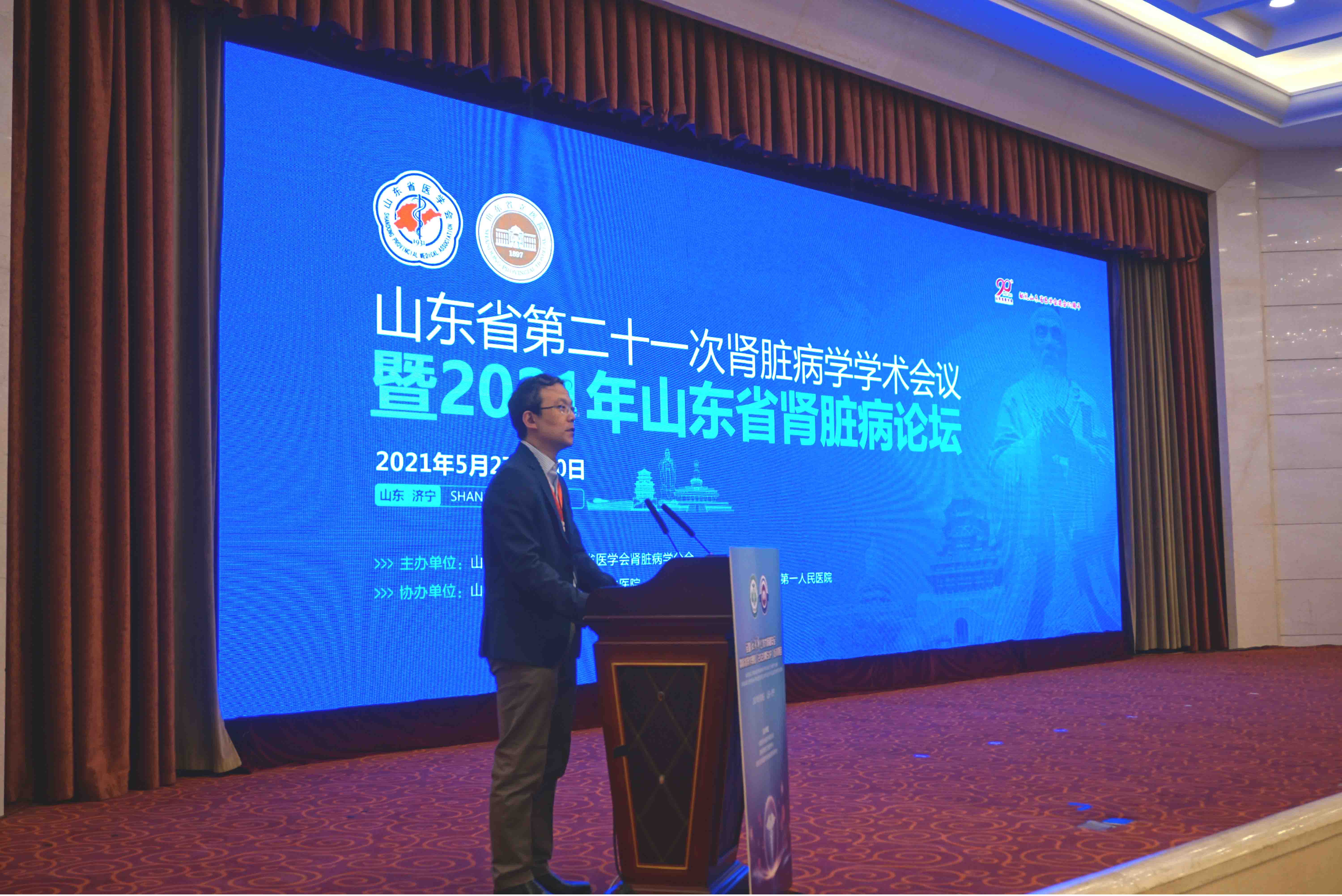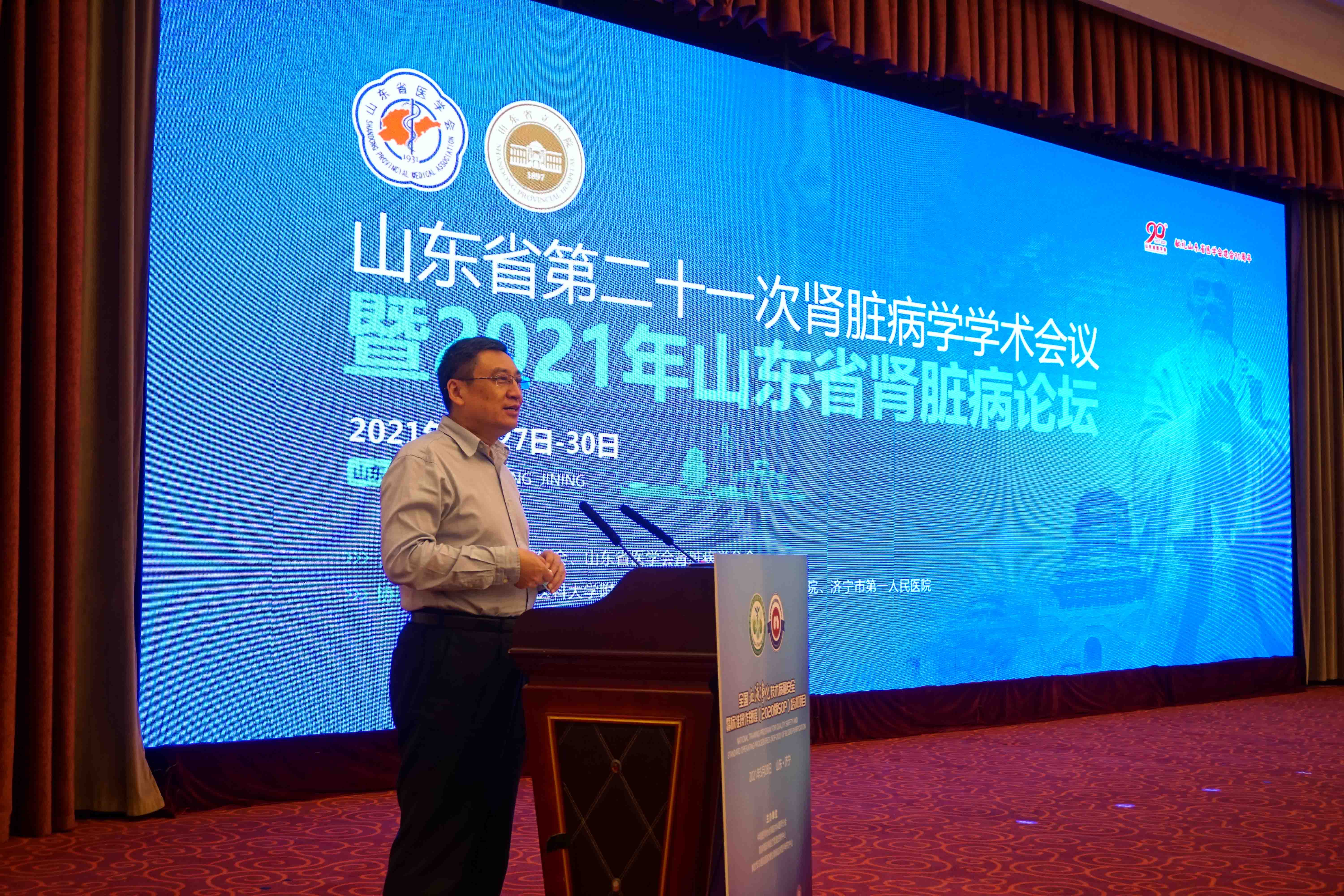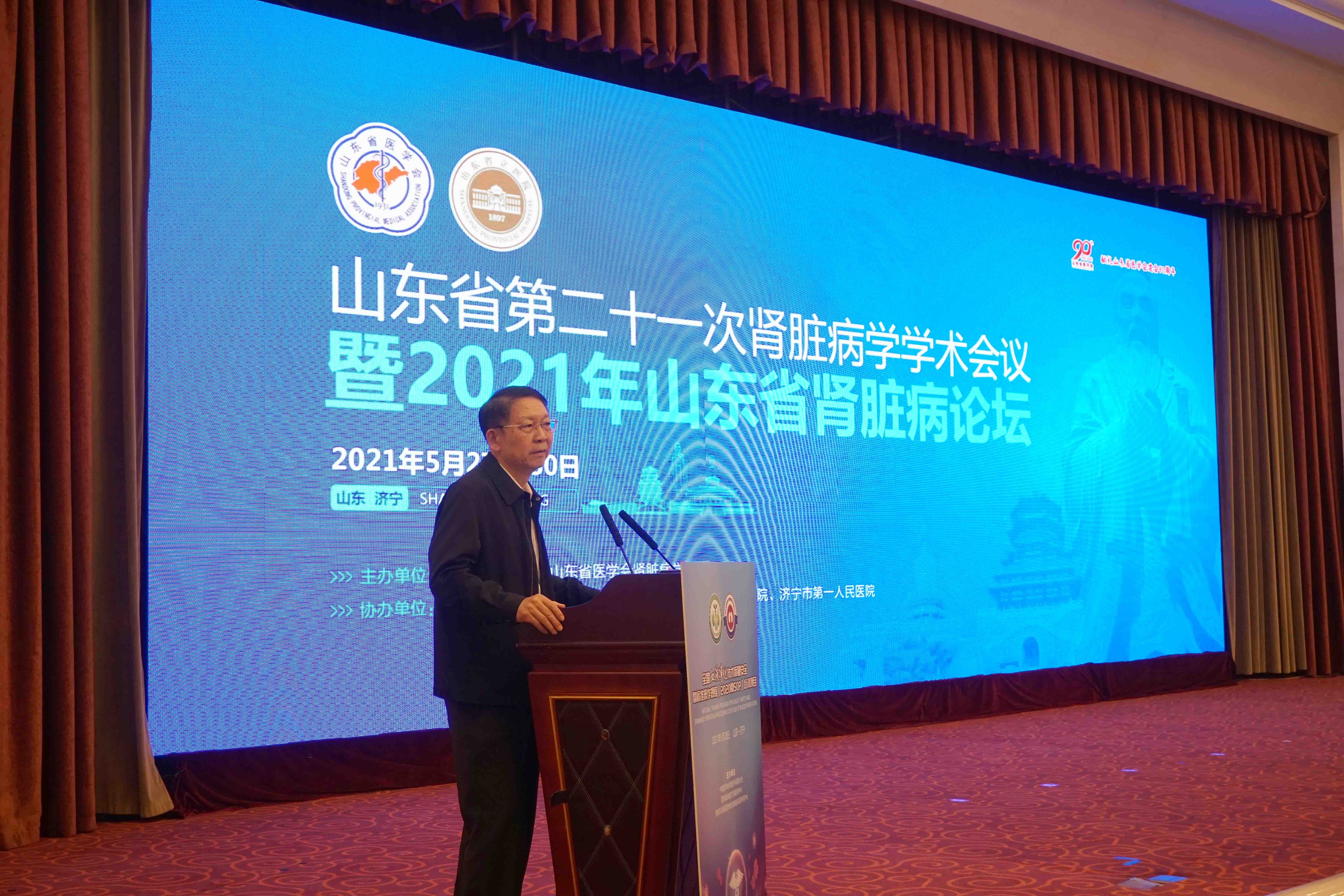 2021年5月27日至30日,由山东省医学会、山东省医学会肾脏病学分会主办,山东第一医科大学附属山东省立医院、济宁医学院附属医院和济宁市第一人民医院共同承办的山东省第二十一次肾脏病学学术会议暨2021年山东肾脏病论坛在济宁召开。大会同期举行全国血液净化技术医疗质量安全暨标准操作规程(SOP)培训班。会议采用线上、线下相结合的方式进行,中华医学会肾脏病分会候任主任委员、中国人民解放军总医院肾脏病医学部主任蔡广研,山东省医学会驻会副会长刘岩,济宁医学院附属医院院长甘立军出席开幕式并致辞。省医学会副会长、肾脏病学分会主任委员、山东第一医科大学附属省立医院副院长王荣主持会议。