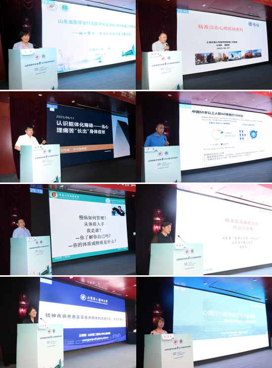 会议设置专题讲座、青年医师论文报告会、科普学组成立等环节,邀请上海交通大学附属仁济医院毛家亮、山东第一医科大学附属省立医院卢林、青岛大学附属医院郭宗君、山东第一医科大学第一附属医院李秀华、山东第二医科大学心理学院王艳郁、山东大学齐鲁医院毛雪琴、泰安八十八医院副院长张敬军、济宁医学院刘传新、济宁医学院附属医院班博、张梅等进行主题演讲。学术内容聚焦行为医学热点前沿,涵盖心理疾病诊治、脑与行为医学、精神疾病诊疗模式构建、矮小症健康管理、肥胖管理、脑体质与慢病共病等,汇聚学术精粹、聚焦科研前沿、激发思维碰撞,为同仁带来一场精彩纷呈的学术盛宴。