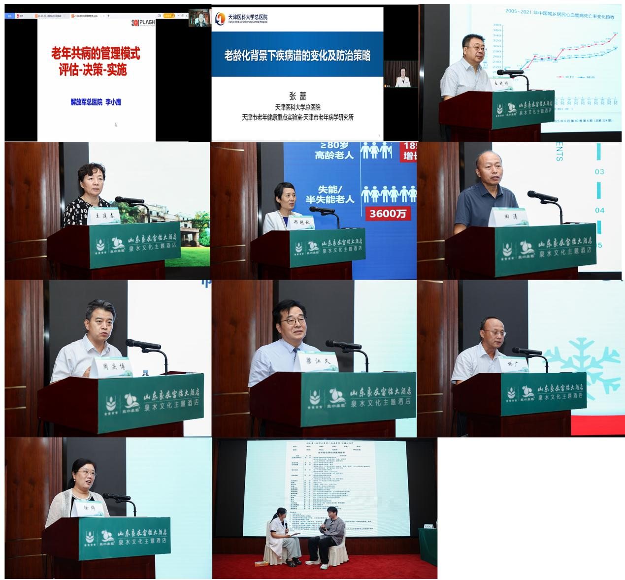 来自解放军总医院第二医学中心的李小鹰就“老年共病的科学管理”进行深入阐述;天津医科大学总医院张蔷分析了“老龄化背景下疾病谱的变化及防治策略”;空军军医大学西京医院的王晓明探讨了“CKM综合征的新挑战”;山东省卫生健康委医养健康处处长于风华分享“老年健康与医养结合服务”宝贵经验。山东第一医科大学附属省立医院王建春、山东大学齐鲁医院邢艳秋、临沂市人民医院田涛、山东中医药大学附属医院周庆博以及来自山东第一医科大学第一附属医院的梁江久、杨广、徐群等省内专家分别就老年医学多学科协作、老年衰弱、肌少症、帕金森认知障碍及老年综合评估的实践操作等内容进行了精彩的学术报告。