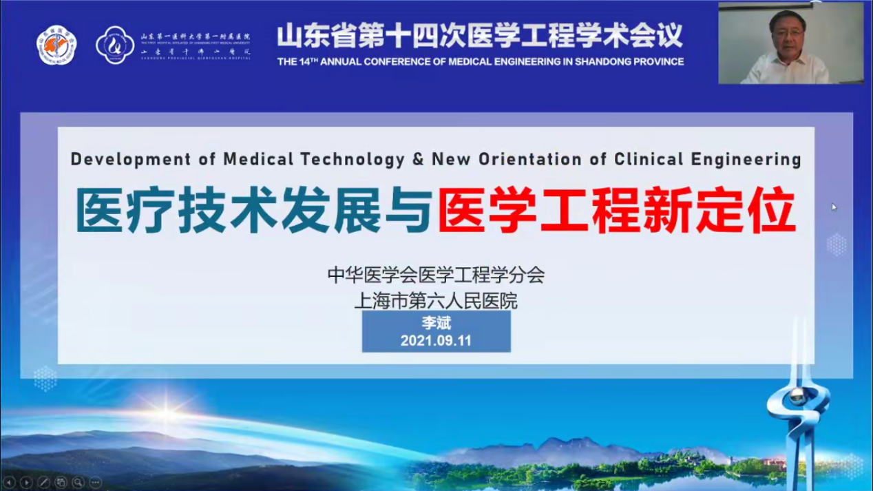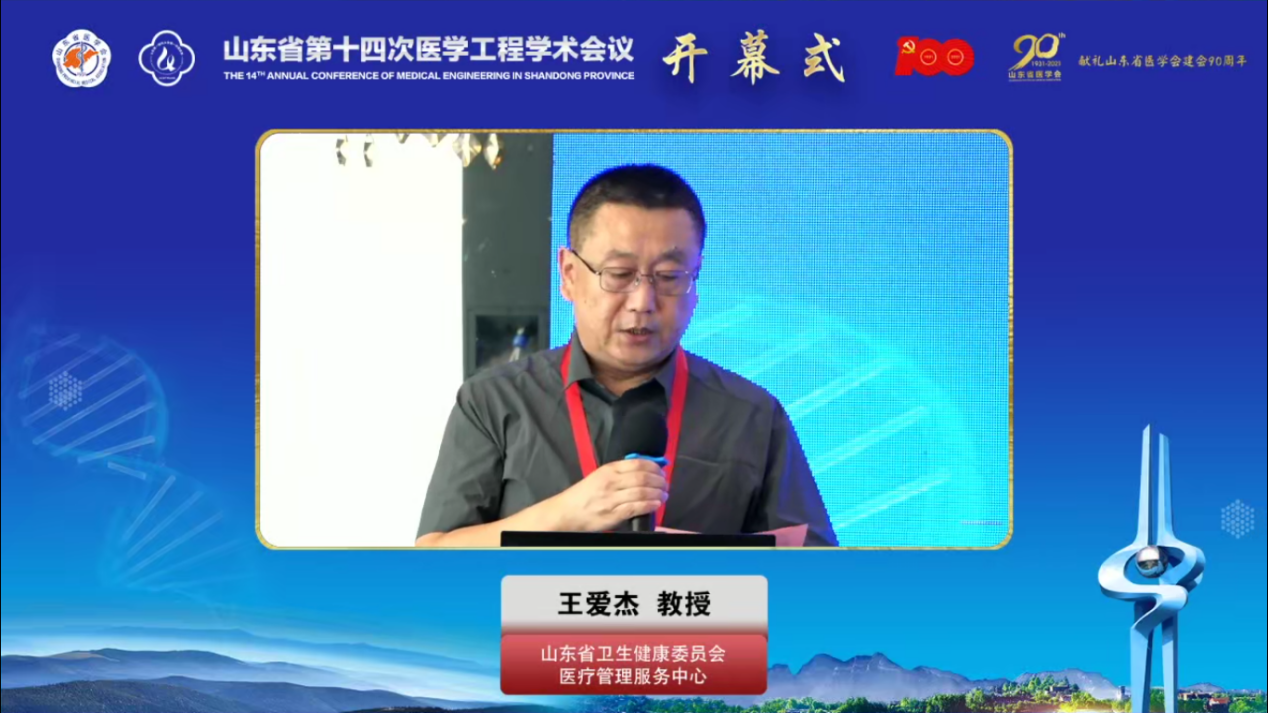 2021年9月11日,由山东省医学会主办,山东省医学会医学工程学分会和山东第一医科大学第一附属医院(山东省千佛山医院)共同承办的山东省第十四次医学工程学术会议在济南成功召开。山东省医学会秘书长张林、山东第一医科大学第一附属医院(山东省千佛山医院)党委书记王一兵,山东省卫生健康委医疗管理服务中心党委书记、主任王爱杰,山东省医学会医学工程学分会主任委员范医鲁出席会议开幕式并致辞。开幕式由山东省医学会医学工程学分会候任主任委员刘庆主持。