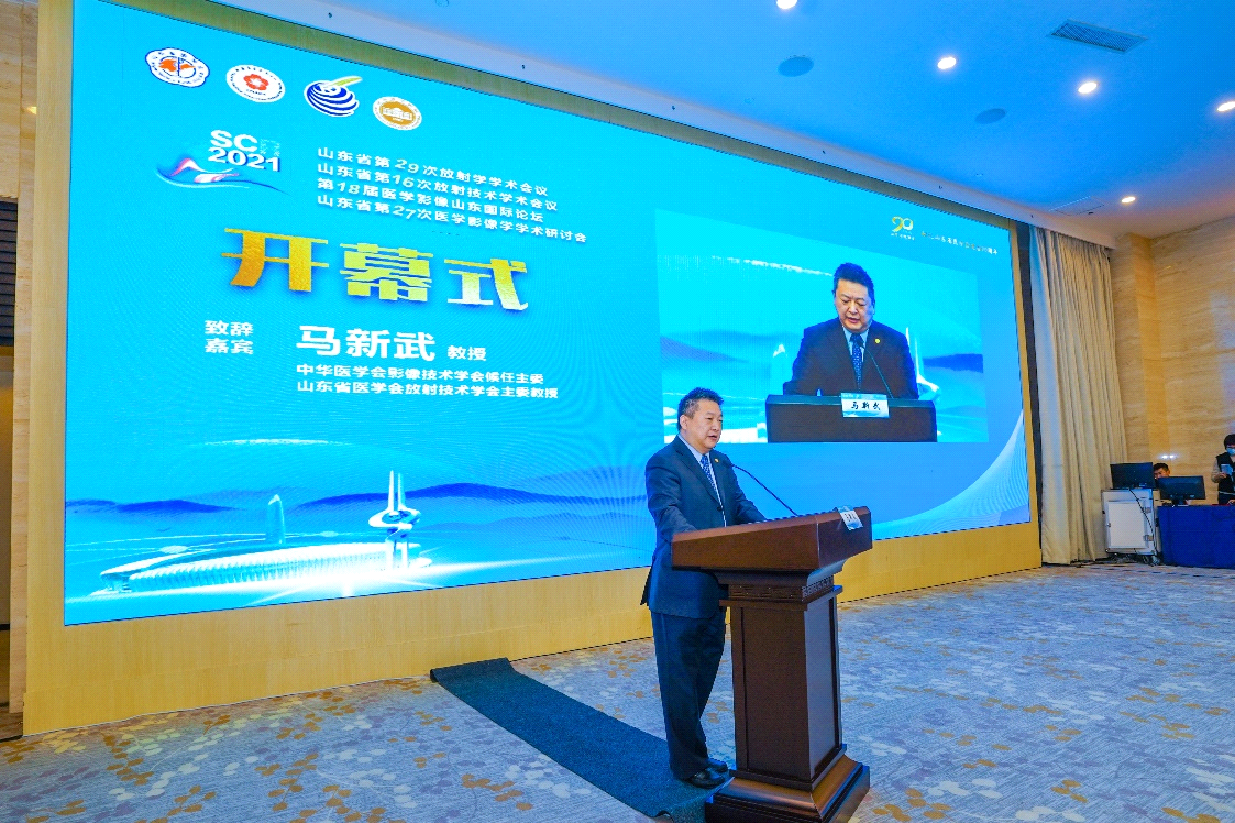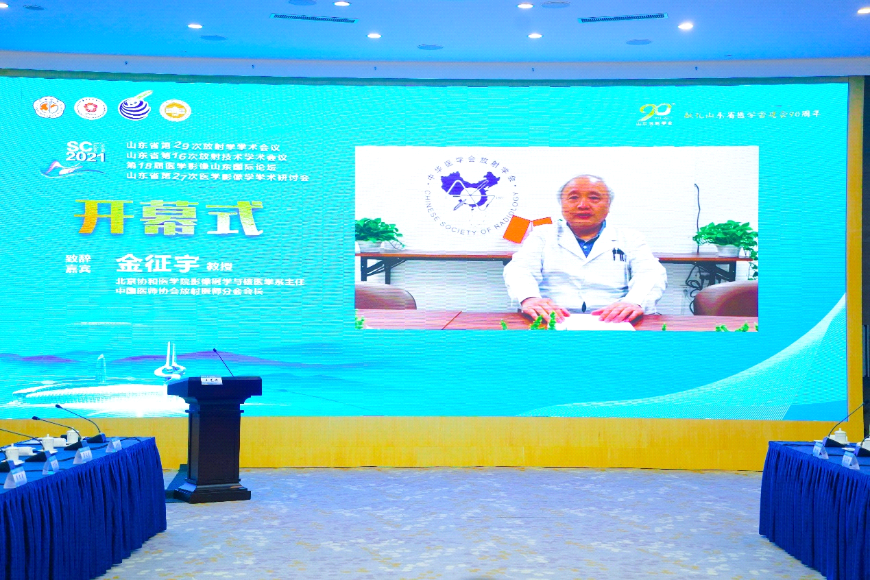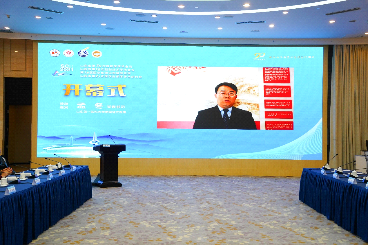 山东省医学会副会长、山东第一医科大学党委书记韩金祥,山东省医学会秘书长张林,山东第一医科大学附属省立医院党委书记孟冬,中华医学会放射学分会主任委员、上海长征医院医学影像科主任刘士远,中国医师协会放射医师分会会长、北京协和医学院影像医学与核医学系主任金征宇,中华医学会影像技术分会主任委员、四川大学华西临床医学院影像技术系主任李真林,中华放射学杂志编辑部主任张琳琳,山东省医学会放射学分会主任委员王光彬,中华医学会影像技术学会候任主任委员、山东省医学会放射技术分会主任委员马新武分别通过线上、线下方式致辞。开幕式由山东省医学会放射学分会副主任委员毕万利,山东省医学会放射技术分会前任主任委员宋少娟主持。