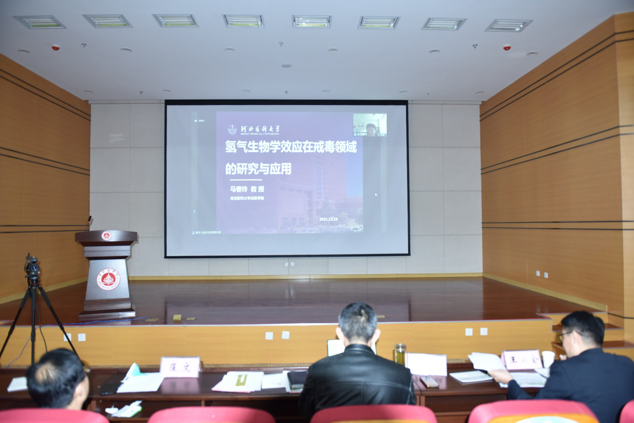河北医科大学法医学院院长马春玲做了《氢气生物学效应在戒毒领域的研究和应用》报告
