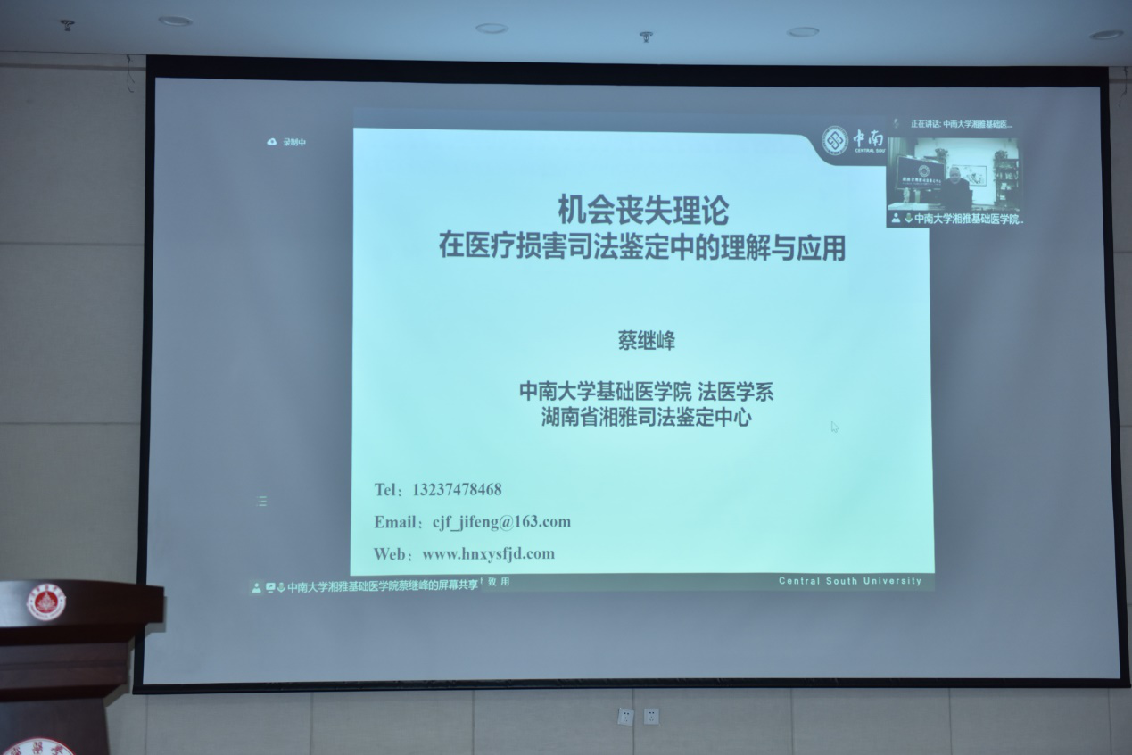 中南大学湘雅司法鉴定中心主任蔡继峰做《机会丧失理论在医疗损害鉴定中的理解和适用》报告