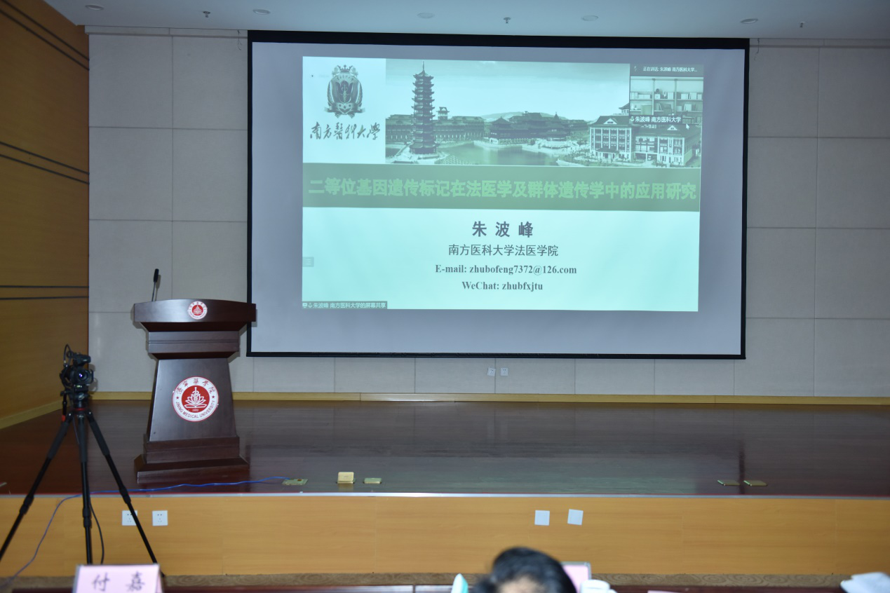 南方医科大学法医学院长院朱波峰做《二等位基因遗传标记在法医学及群体遗传学中的应用研究》报告