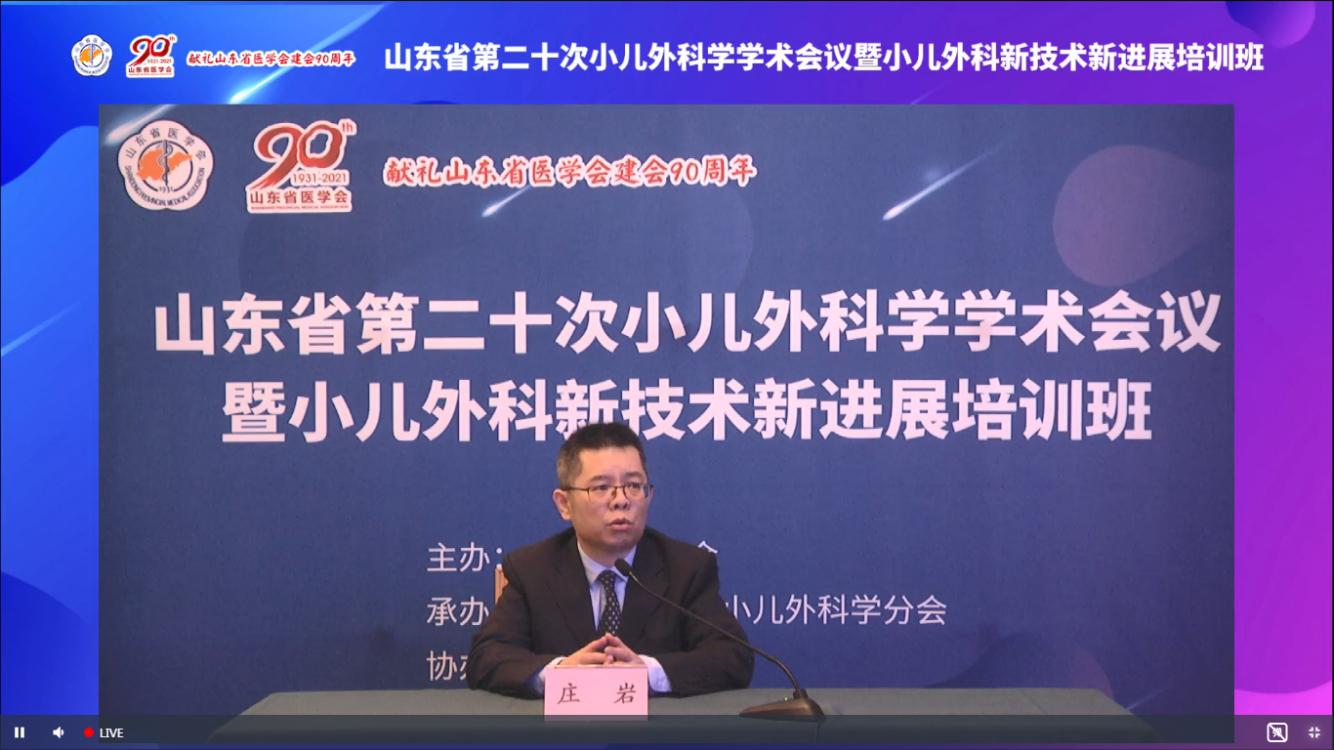 2021年12月30日至12月31日,由山东省医学会主办、山东省医学会小儿外科学分会承办、泰安市中心医院协办的山东省第二十次小儿外科学学术会议暨小儿外科新技术新进展培训班(线上)成功举办。来自全省各地市300余名代表线上参会。