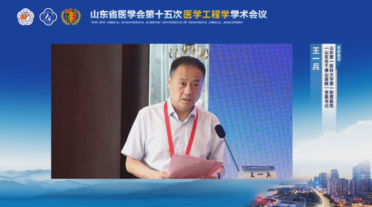 山东省医学会驻会副会长刘岩,山东省医学会医学工程学分会前任主任委员、山东省卫生健康委医疗管理服务中心主任王爱杰,山东第一医科大学第一附属医院(山东省千佛山医院)党委书记王一兵、青岛大学附属医院党委书记蒋光峰通过线上线下的方式致开幕词。开幕式由山东省医学会医学工程学分会主任委员、山东第一医科大学第一附属医院(山东省千佛山医院)范医鲁主持。