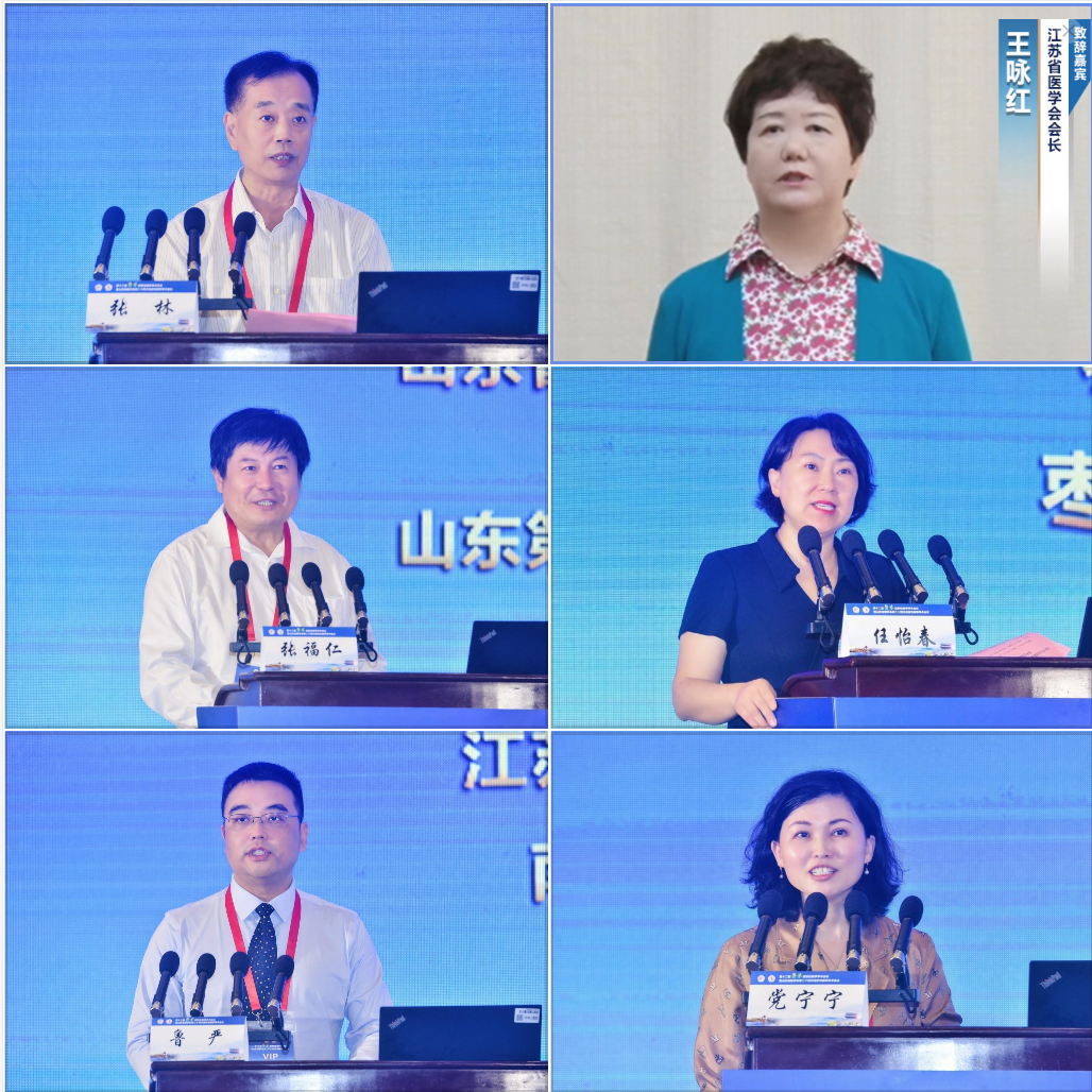 山东省医学会秘书长张林,江苏省医学会会长王咏红,山东省医学会皮肤性病学分会主任委员、山东第一医科大学副校长、山东第一医科大学附属皮肤病医院院长张福仁,江苏省医学会皮肤性病学分会主任委员、南京医科大学第一附属医院皮肤科主任鲁严,枣庄市政协副主席、枣庄市卫生健康委副主任任怡春分别通过线上线下的方式致开幕词。会议开幕式由山东省医学会皮肤性病学分会候任主任委员、山东第一医科大学附属省立医院皮肤科主任党宁宁主持。来自鲁苏两省150余名代表线下参会,线上直播平台点击量累计2万余次。