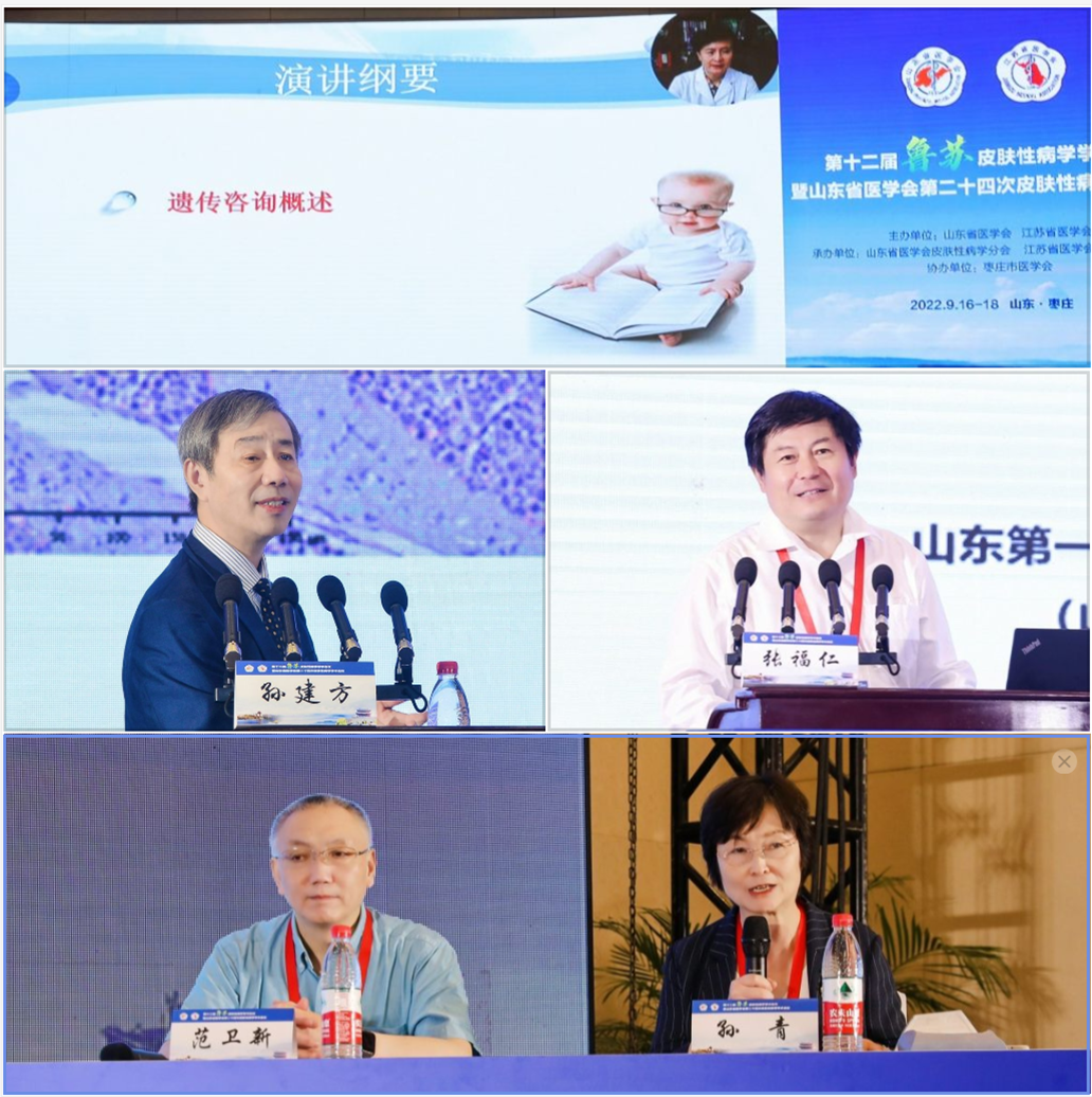 会议邀请多位国内知名专家作大会主题讲座。中国科学院院士、山东大学讲席教授、山东大学妇儿医学研究中心主任陈子江带来《遗传咨询和出生缺陷防治》的主旨报告,深入浅出地介绍了遗传咨询的概念及临床意义,并从“遗传咨询概述”“家系分析”等5大版块阐述了出生缺陷防治策略;中国医学科学院皮肤病医院孙建方带来《年度精彩病例分享》,将少见病例临床表现与病理结果紧密结合,为与会同道提供新的诊疗思路;张福仁带来《药物不良反应风险靶点的发现和转化医学研究》的精彩分享,通过对氨苯砜不良反应位点的发现、检测试剂盒研发和推广的讲解,展现了氨苯砜的良好的临床应用前景,拓宽了与会代表的科研思路。