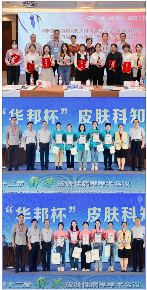 会议同期举办了第四届“康哲美丽杯”皮肤科青年医师病例演讲大赛,经过激烈角逐,江苏省人民医院熊喜喜医生问鼎冠军;在第七届“华邦杯”皮肤科知识擂台赛上,10位青年医师登台竞技,经过激烈角逐,党宁宁率领的山东代表队险胜由中国医学科学院皮肤病医院陈浩率领的江苏代表队。通过比赛,年轻的皮肤科医生展示了青春风采,赛出了风格、赛出了友谊。