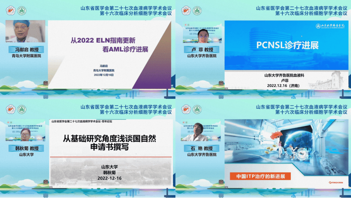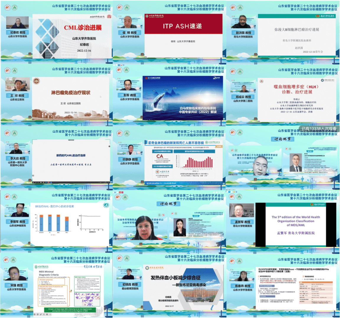 2022年12月16日—17日,由山东省医学会、山东省医学会血液病学分会、山东省医学会临床分析细胞学分会主办,山东大学齐鲁医院承办的山东省医学会第二十七次血液病学学术会议、第十六次临床分析细胞学学术会议在线成功召开。会议进行全程直播,24万人次观看。