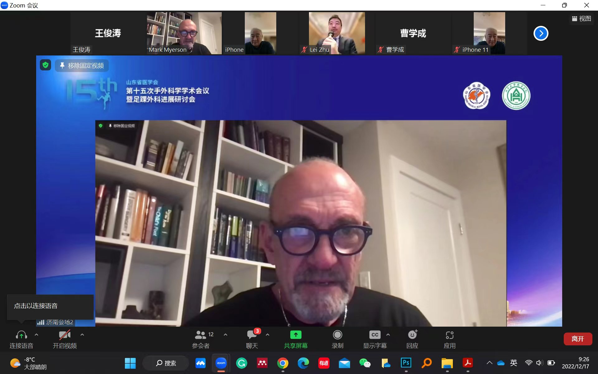 山东省医学会手外科学分会主任委员、山东大学齐鲁医院手足外科主任朱磊总结了分会2022年工作情况。