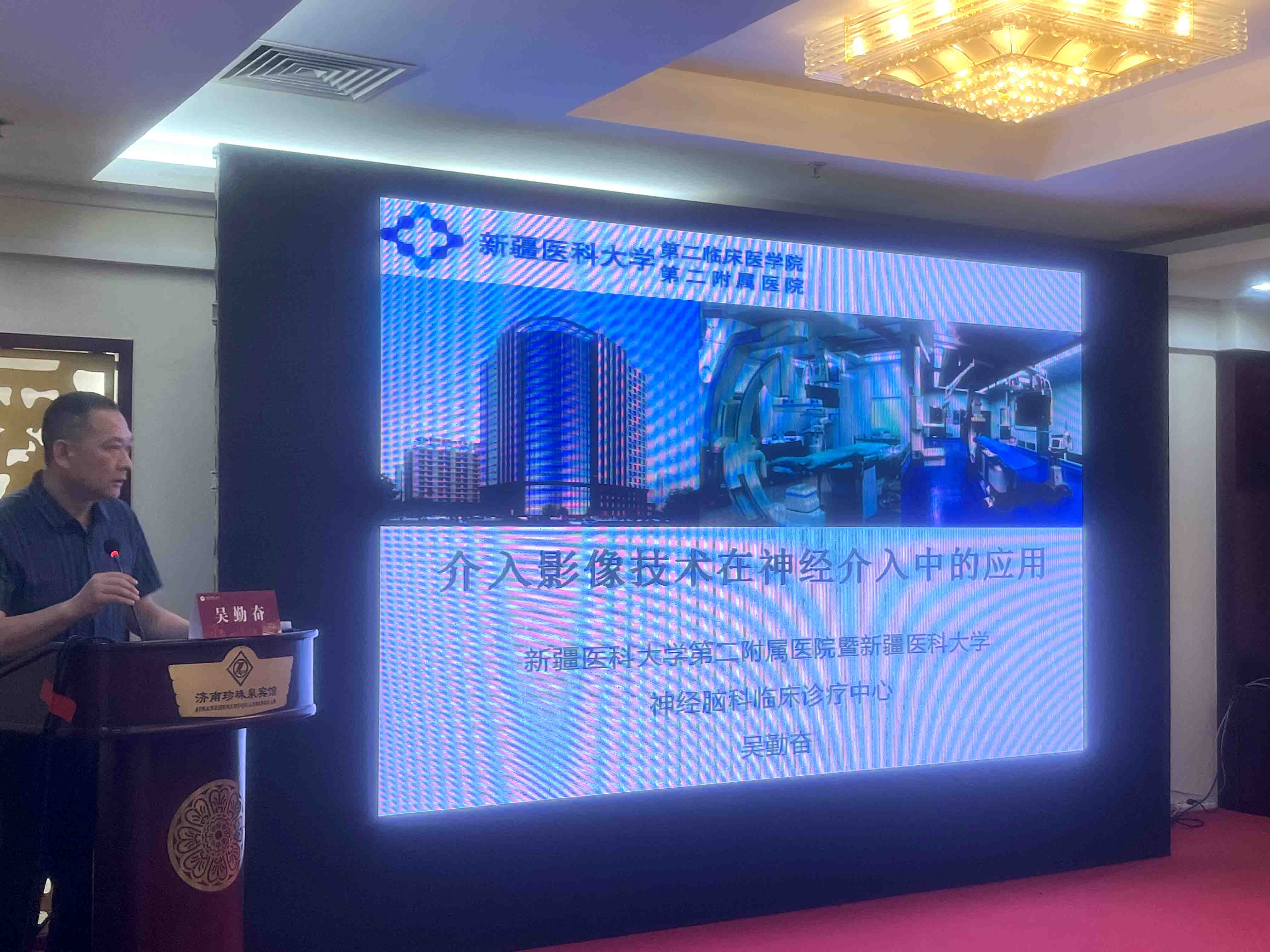 新疆医科大学第二附属医院吴勤奋教授讲授“介入影像技术在神经介入中的应用”。分享了自己的介入团队在利用类CT技术等介入影像技术方面的成功案例,详细介绍如何利用介入影像技术进行脑动脉瘤、脑动脉狭窄等疾病进行术前设计、术中和术后评价,强调了介入医师、技师、护士等团队协作对一台高质量介入手术的重要性。