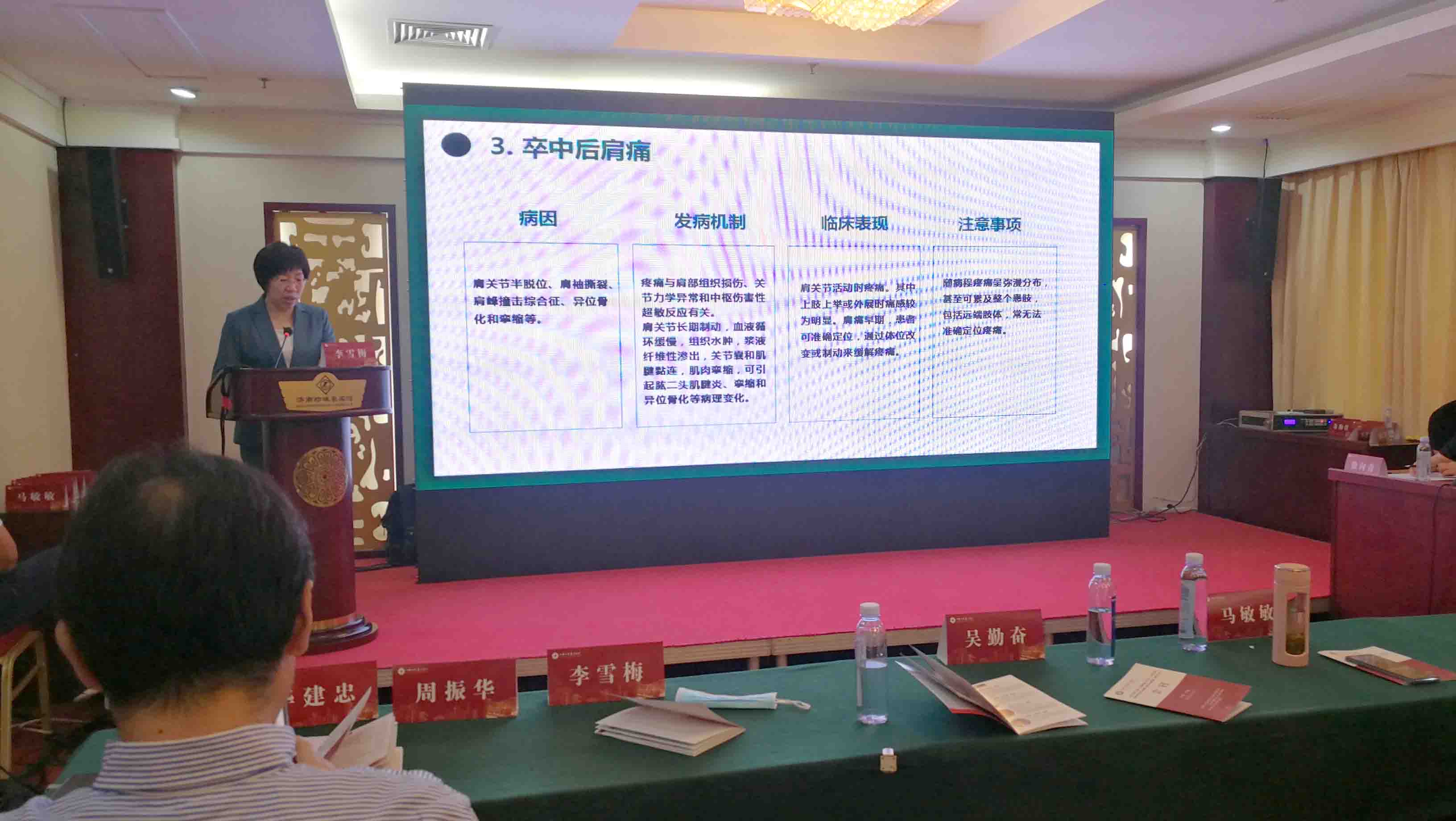 分会委员、潍坊医学院附属医院李雪梅讲授“重视老年卒中后疼痛”。介绍了卒中后疼痛的定义,并提出卒中后疼痛发生率高、关注度差、缓解率低等现状,重点对卒中后中枢性疼痛、痉挛相关性疼痛、卒中后肩痛、复杂区域性疼痛综合征、卒中后头痛等卒中后疼痛类型的临床表现、诊断标准、评估和综合管理进行了深入讲解,引发与会者对卒中后疼痛的关注。