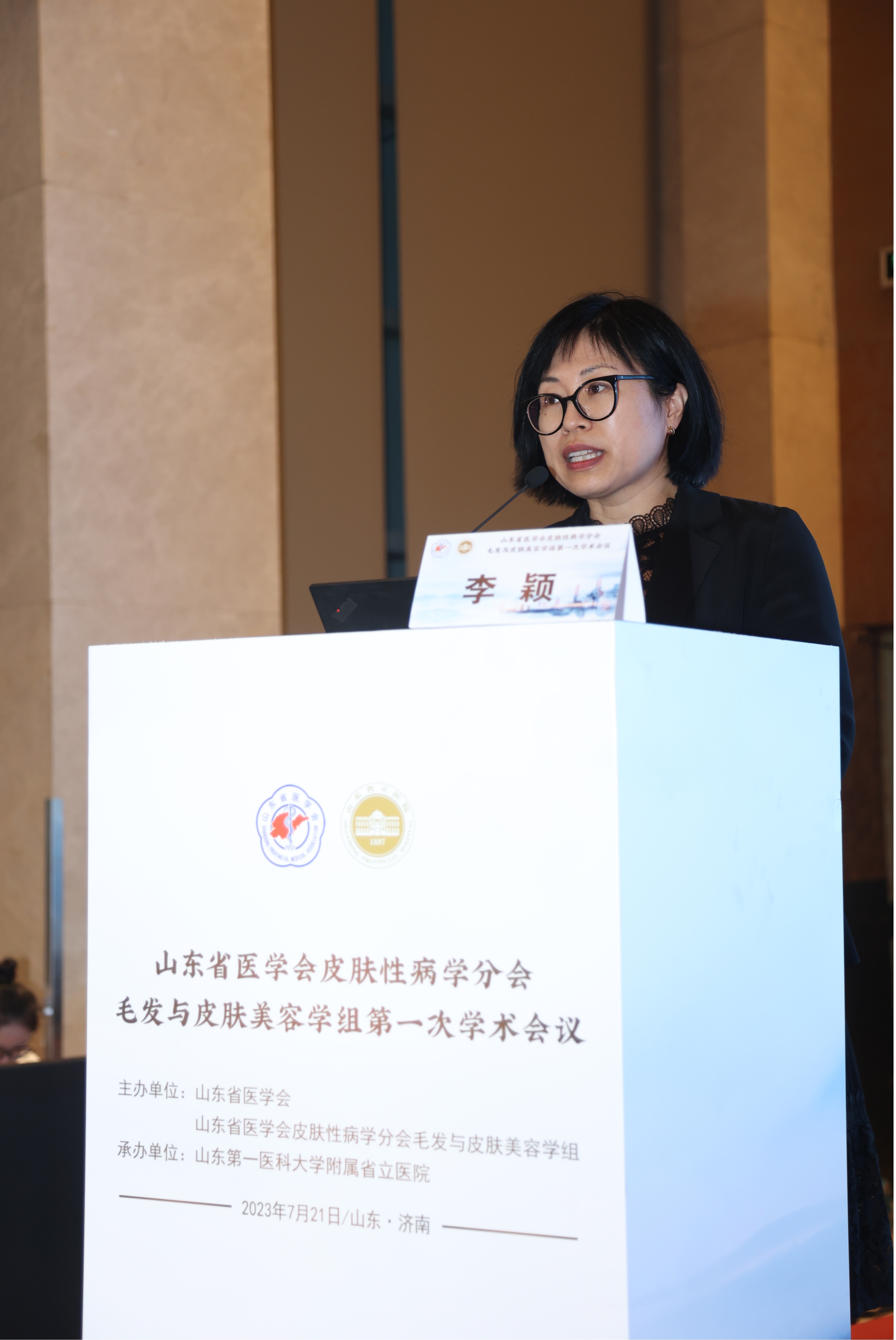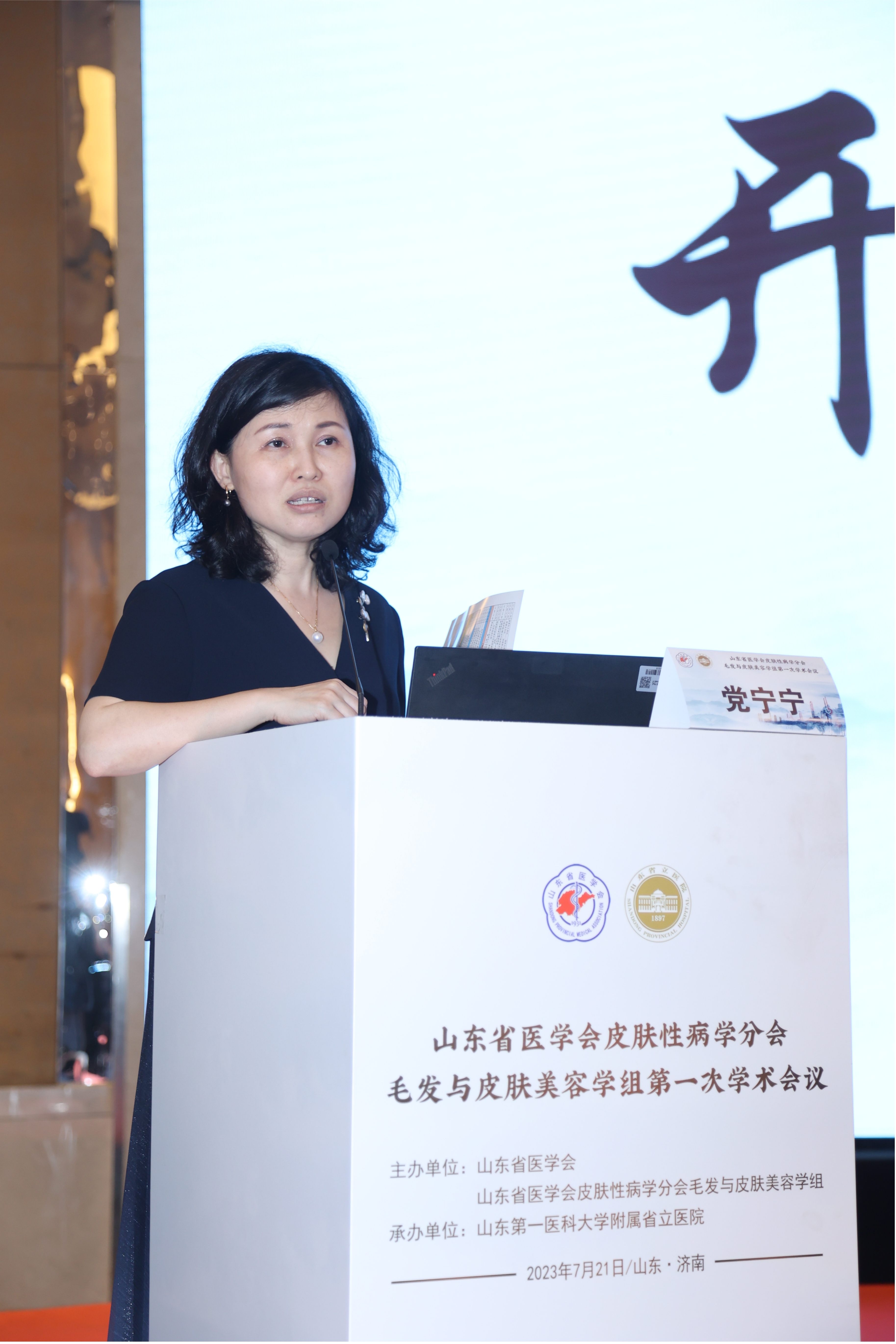 山东省医学会皮肤性病学分会候任主任委员、毛发疾病与皮肤美容学组组长、山东第一医科大学附属省立医院皮肤科主任党宁宁致开幕词。