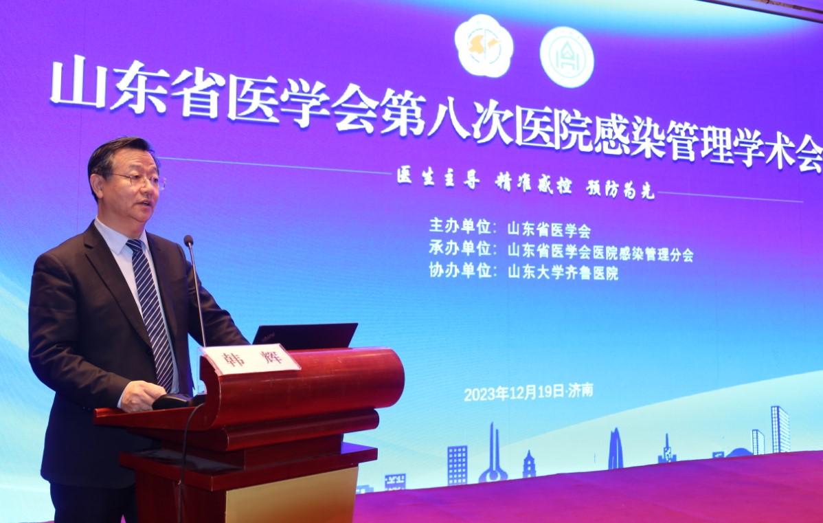 山东省医学会医院感染管理分会名誉主任委员、山东大学齐鲁医院副院长韩辉致辞,指出基础感控、循证感控、精准感控作为感控工作的“三驾马车”,一直在不断向更高阶段发展、转变,医生主导下的精准感控策略是我国感控事业发展的大趋势,也是促成“人人感控”的加速器,山东省医学会医院感染管理分会一直秉承“医生主导,精准感控”的理念,着力推进精准感控工作在全省的推广,取得了累累硕果。