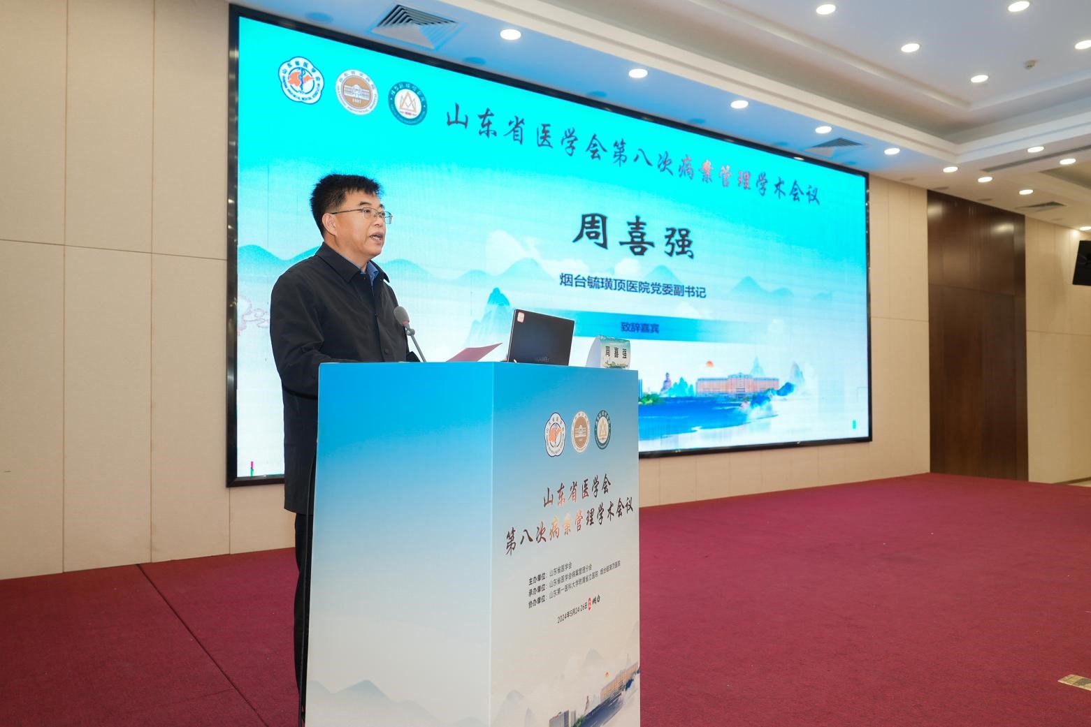 本次会议由山东省医学会病案管理分会候任主任委员、烟台毓璜顶医院马先莹主持,山东省医学会病案管理委员会主任委员、山东第一医科大学附属省立医院赵序利,烟台市医学会秘书长杨林海,烟台毓璜顶医院党委副书记周喜强分别致辞。