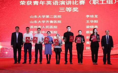 ▲青年英语演讲比赛(职工组)获奖选手领奖