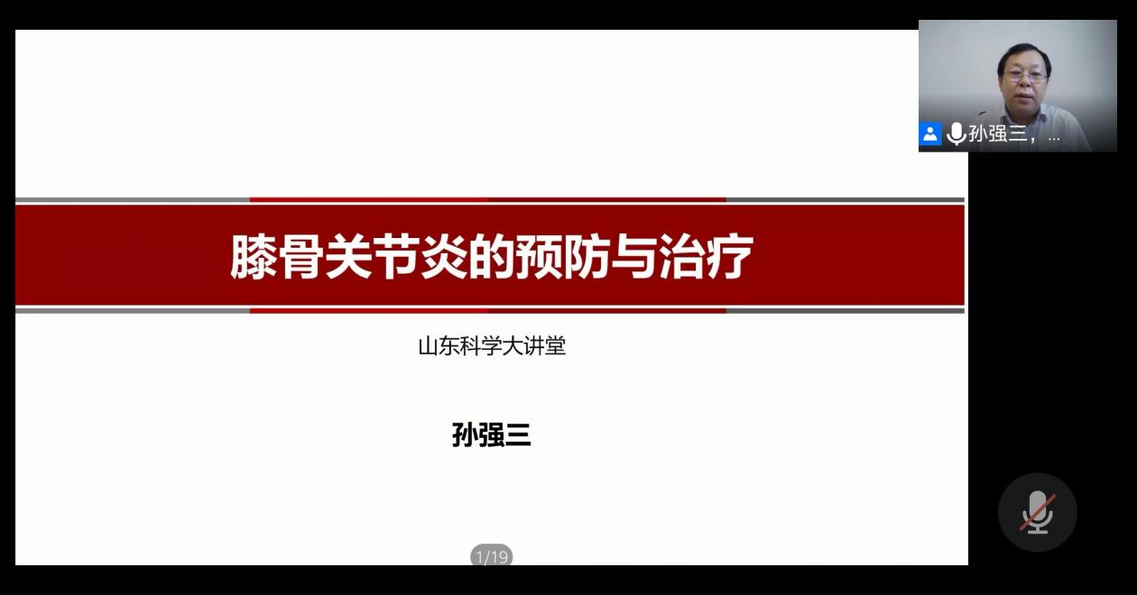 7月17日,由山东省科协、山东省教育厅、山东省科学技术厅、山东省卫生健康委主办,山东省医学会物理医学与康复分会承办,山东第一医科大学附属省立医院康复医学科协办的“山东科学大讲堂—颈肩腰腿痛为主的慢病群体的预防与康复”专题讲座在线举办,山东省医学会物理医学与康复学分会前任主任委员、山东大学第二医院康复医学科学术带头人孙强三,山东省医学会物理医学与康复学分会候任主任委员、山东大学齐鲁医院康复中心副主任王永慧,山东省医学会物理医学与康复学分会副主任委员、山东省立医院康复医学科主任范晓华,以及两位康复治疗师胡林、王颖为大家带来精彩授课,200余人线上参会。