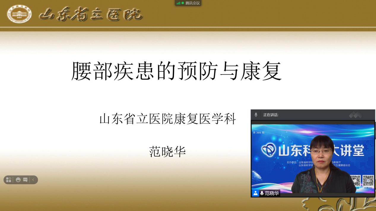 第369期山东科学大讲堂—颈肩腰腿痛为主的慢病群体的预防与康复成功举办