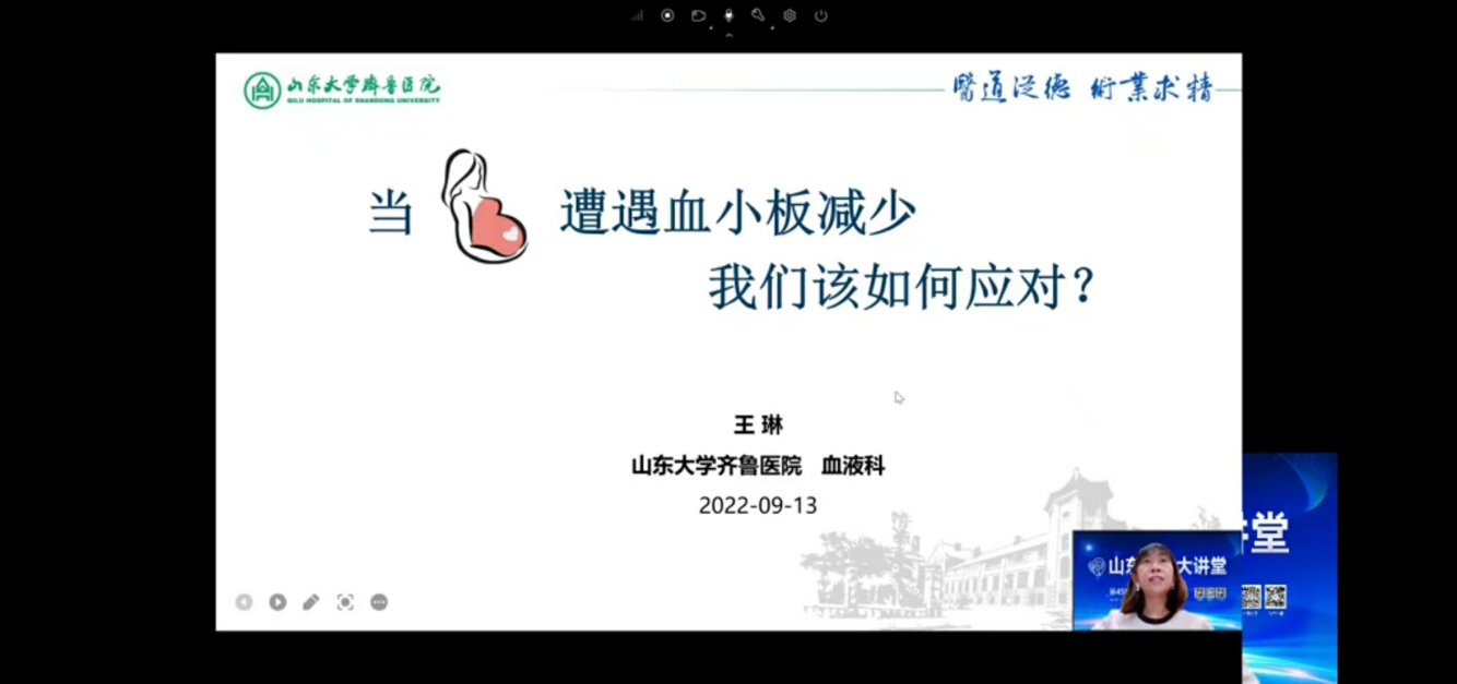 “第458期山东科学大讲堂——当妊娠遭遇血小板减少我们该如何应对?”成功举办