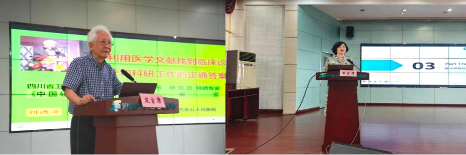 同期召开了山东省医学会“会员服务直通车”第四期暨青年医师科研工作交流研讨会,岳冬丽为济南市第五人民医院颁发会员单位牌匾。刘德齐、王丽丽分别就利用医学文献找到临床诊疗和科研工作的正确答案、医学数字资源检索在医教研管中的应用进行授课,100余名不同专业的青年医师参会。