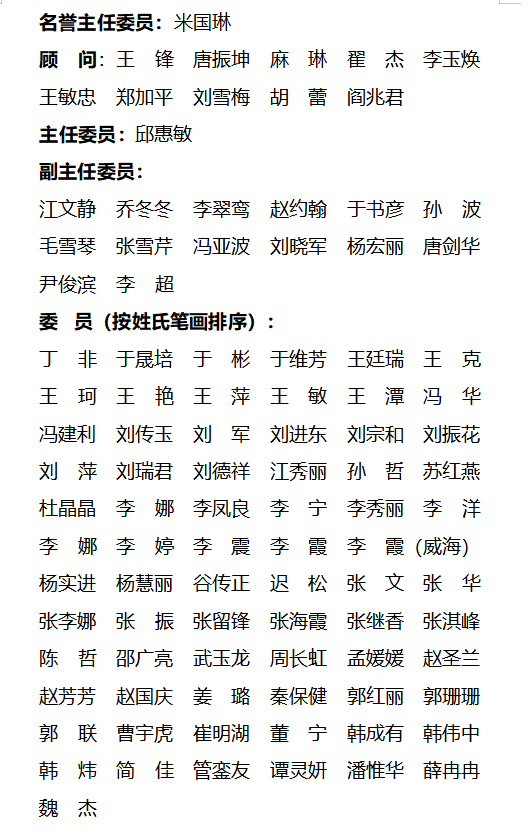 会议根据《山东省医学会专科分会管理办法》等相关规章制度要求,经各省级医疗卫生单位、市医学会推荐和民主投票选举产生第五届委员会,任期三年。人员组成情况如下: