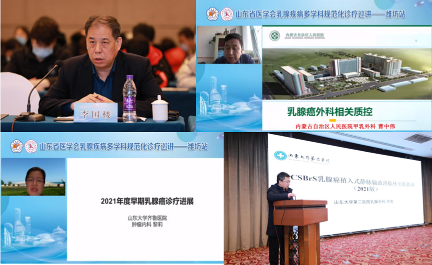 学术环节,内蒙古自治区人民医院甲乳外科曹中伟、山东大学齐鲁医院肿瘤中心黎莉、山东大学第二医院乳腺外科李亮分别就“乳腺癌外科相关质控”、“2021年度早期乳腺癌诊疗进展”、“CSBrS《乳腺癌患者植入式静脉输液港临床实践指南2021版》进行了详细讲解。