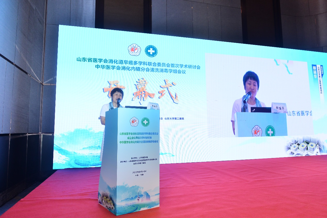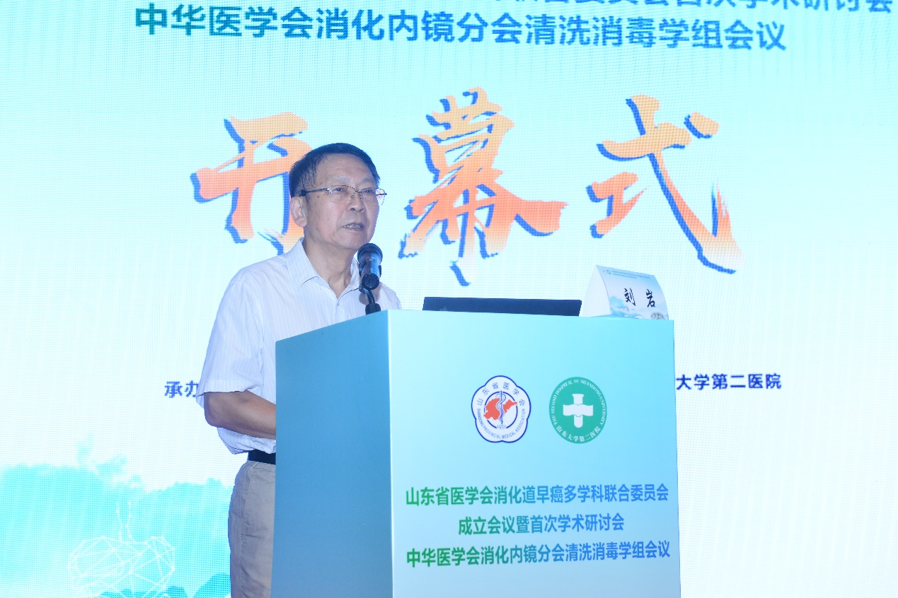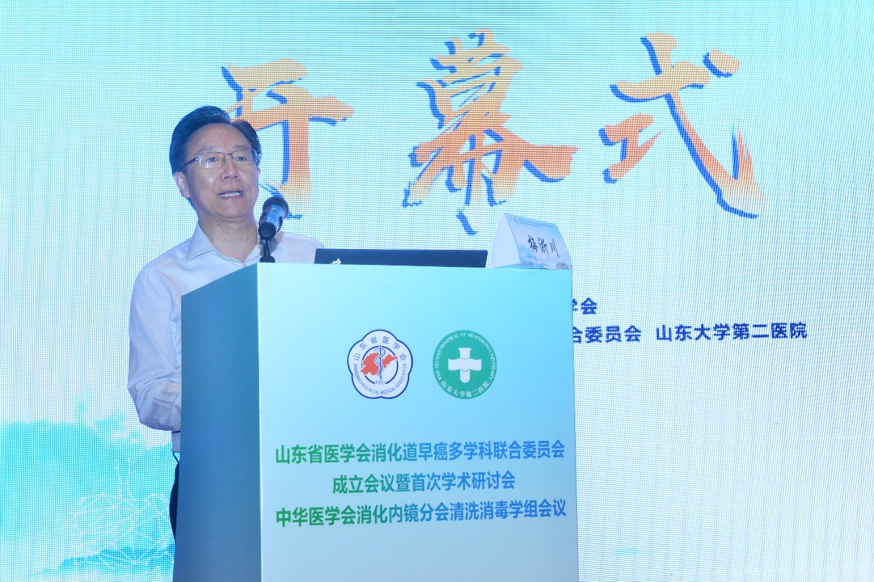 8月5日-6日,由山东省医学会主办,山东省医学会消化道早癌多学科联合委员会、山东大学第二医院承办的山东省医学会消化道早癌多学科联合委员会成立会议暨首次学术研讨会、中华医学会消化内镜分会清洗消毒学组会议在济南成功召开。山东省医学会驻会副会长刘岩,山东大学第二医院党委书记柳丽华,重庆医科大学附属第二医院副院长梅浙川,山东大学齐鲁医院消化内科学科带头人李延青出席开幕式并致辞,山东省医学会消化病学分会名誉主任委员、山东第一医科大学附属省立医院消化内科刘吉勇出席开幕式。首都医科大学附属北京友谊医院执行院长张澍田,中华医学会消化内镜分会主任委员、解放军总医院消化内科医学部主任令狐恩强为会议带来视频致辞。山东省医学会消化道早癌多学科联合委员会主任委员、山东大学第二医院消化科主任郭建强主持开幕式。