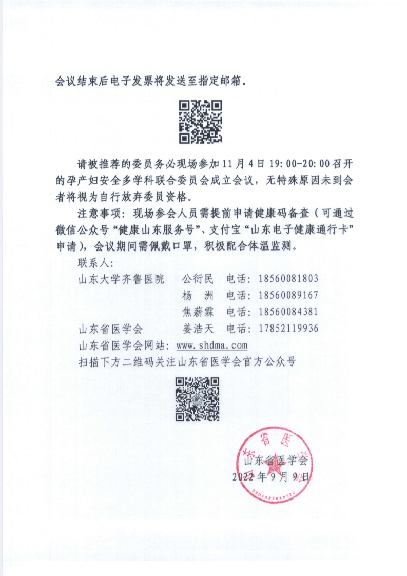 关于召开山东省医学会孕产妇安全多学科联合 委员会成立会议暨首次学术研讨会的通知