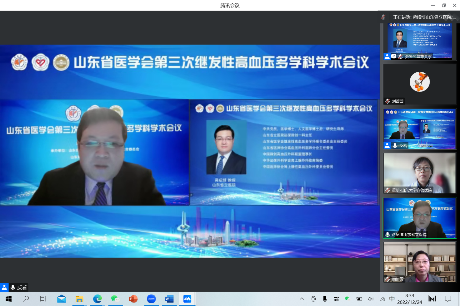 2022年12月24日,由山东省医学会主办,山东省医学会继发性高血压多学科联合委员会、山东第一医科大学附属省立医院承办的山东省医学会第三次继发性高血压多学科学术会议在线成功举办。